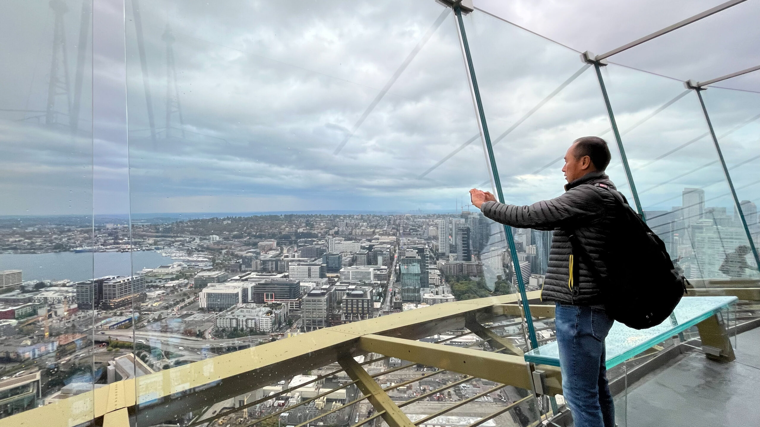 From Marination we walked to the Space Needle. We arrived a little before sunset so that we would be at the top for pre-sunset, sunset, and night time views.