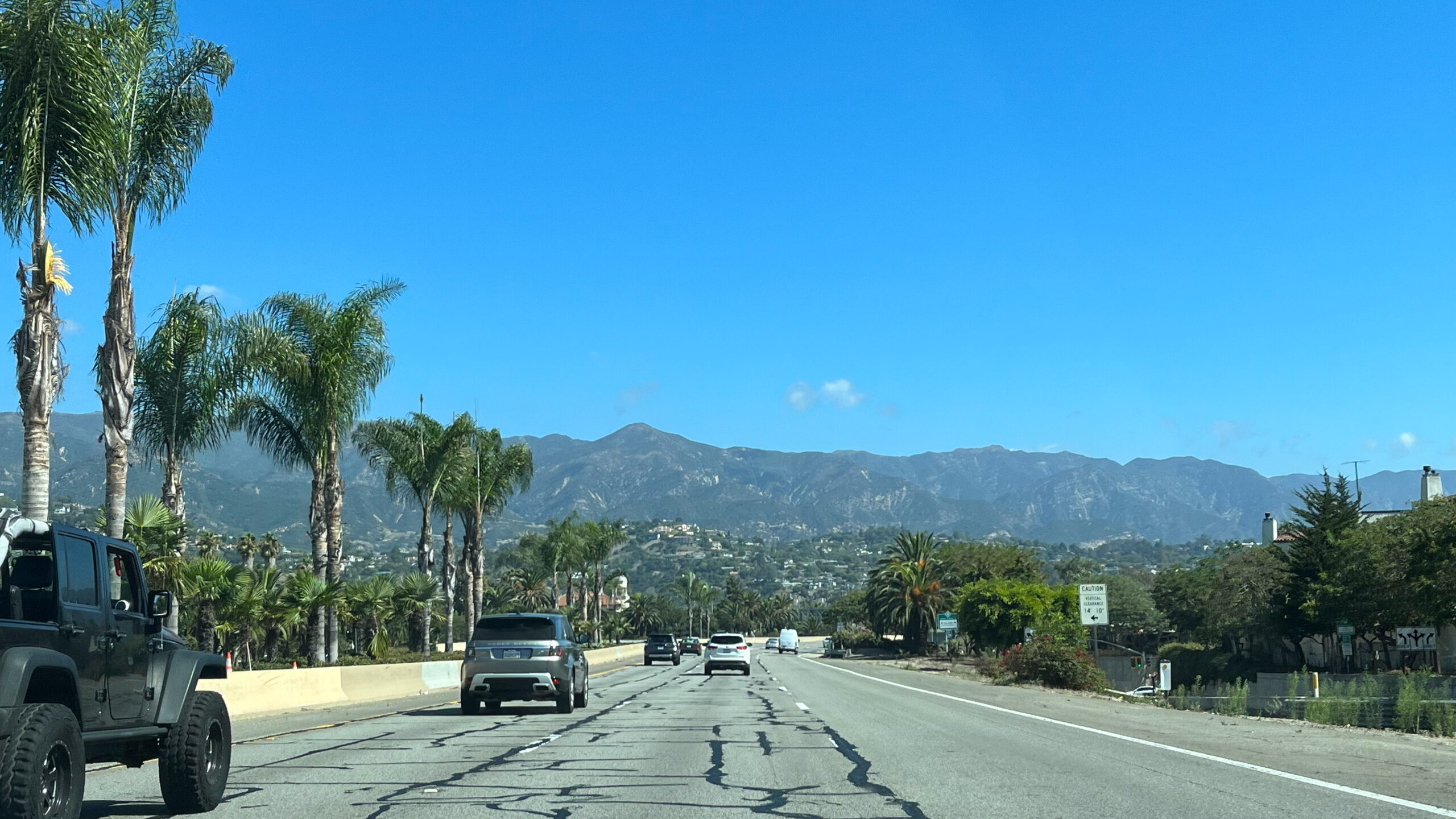 For day 14 of our trip we headed to Orange County, CA with a quick stop in Santa Barbara. We had plans with friends and family that evening in Orange County, so we headed out of Santa Barbara early enough to beat traffic going through Los Angeles County, or at least we thought we headed out early enough to avoid traffic. We had planned on driving Pacific Coast Highway (PCH) to Orange County, but again sections of PCH were closed, so we took the freeways. The traffic was horrendous! It was early afternoon when we left Santa Barbara and we got stuck in barely moving traffic for hours, and not due to any accidents or road construction on the freeways, other than sections of PCH being closed to traffic. It was bumper to bumper, slow moving traffic for miles on end because that’s how bad the traffic has gotten in Southern California. When we moved from California the traffic was bad, but it’s ridiculous now – we are so glad we don’t have to deal with that traffic.