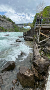 After taking an elevator down, you walk through a tunnel that leads you to a beautiful outdoor walkway next to the Niagara River with class 6 whitewater rapids – “some of the wildest in North America.” Along the walkway are a few viewing platforms that provide great views of the rapids. There are also several signs along the path that tell of interesting facts about this area of Niagara.
