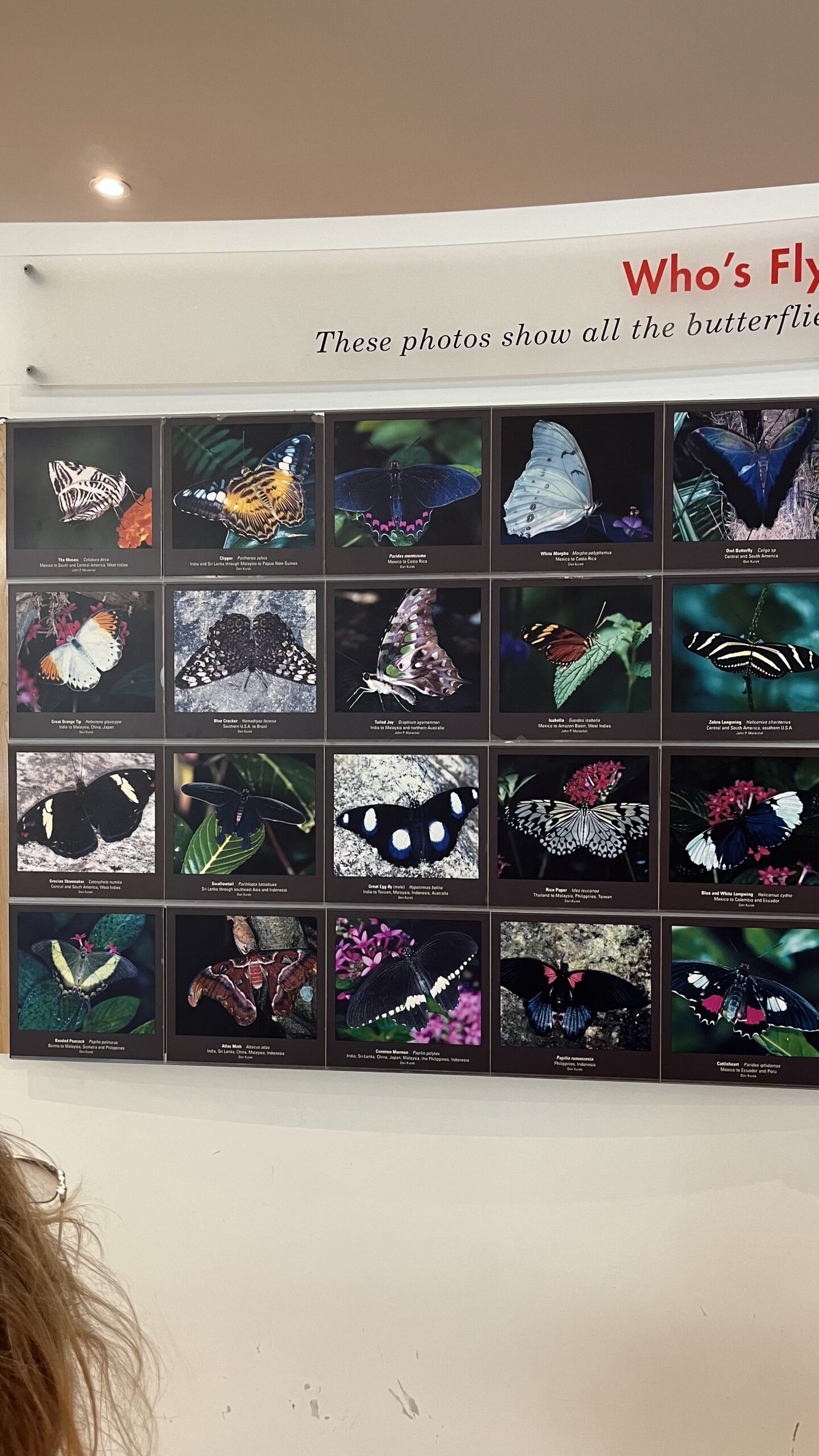 Before you enter the conservatory there’s a large display on the wall that shows which butterflies are in the conservatory during your visit. We saw lots and lots of butterflies and many types of butterflies.