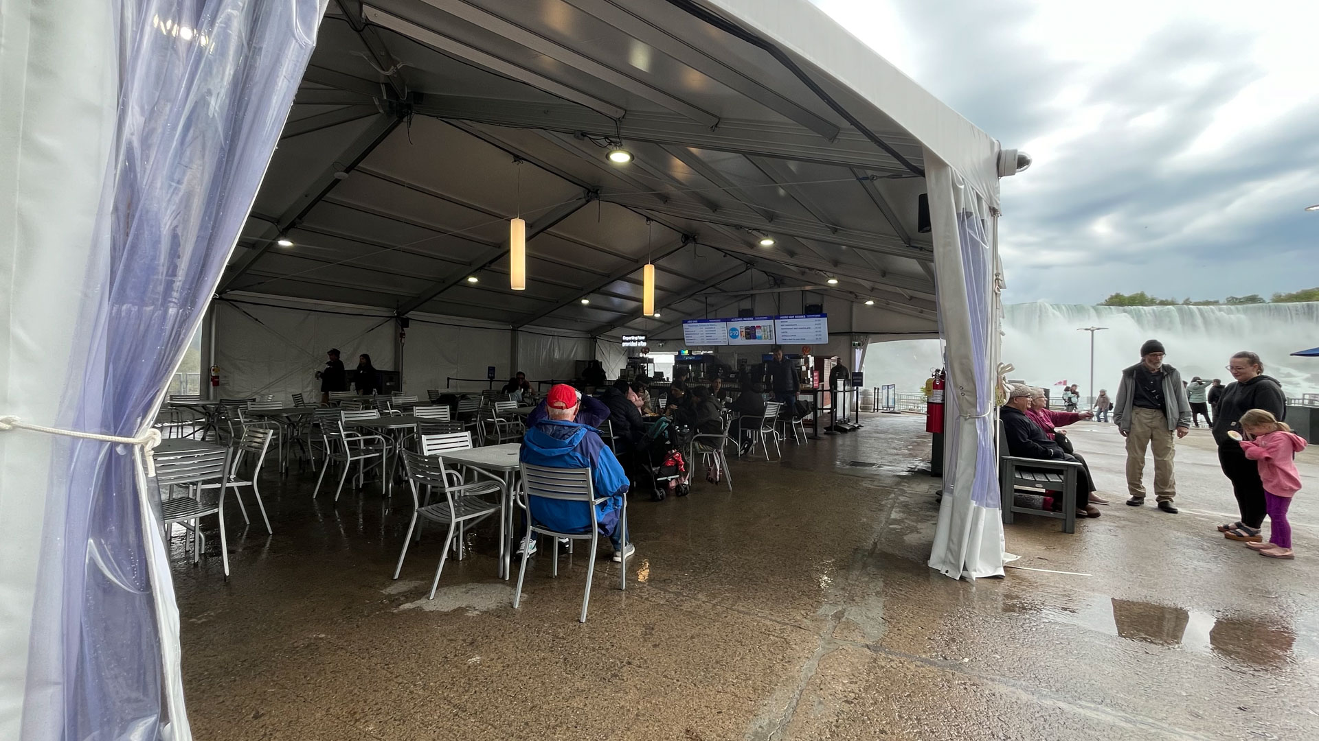 After lunch we walked over to Niagara City Cruises to ride the Hornblower. There was a heavy downpour when we got there so we waited for the rain to start before we got in line for the boat.