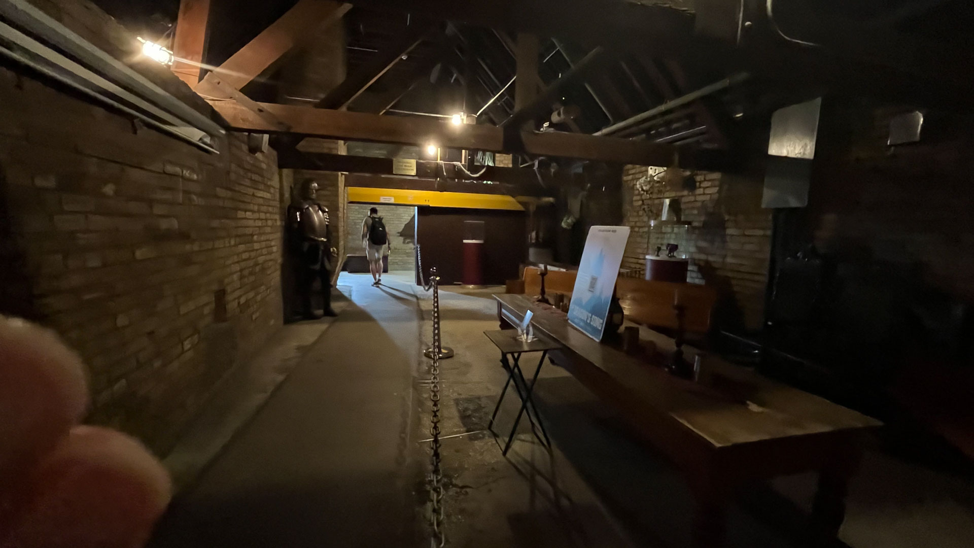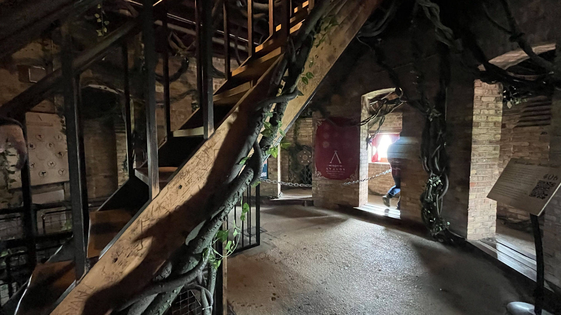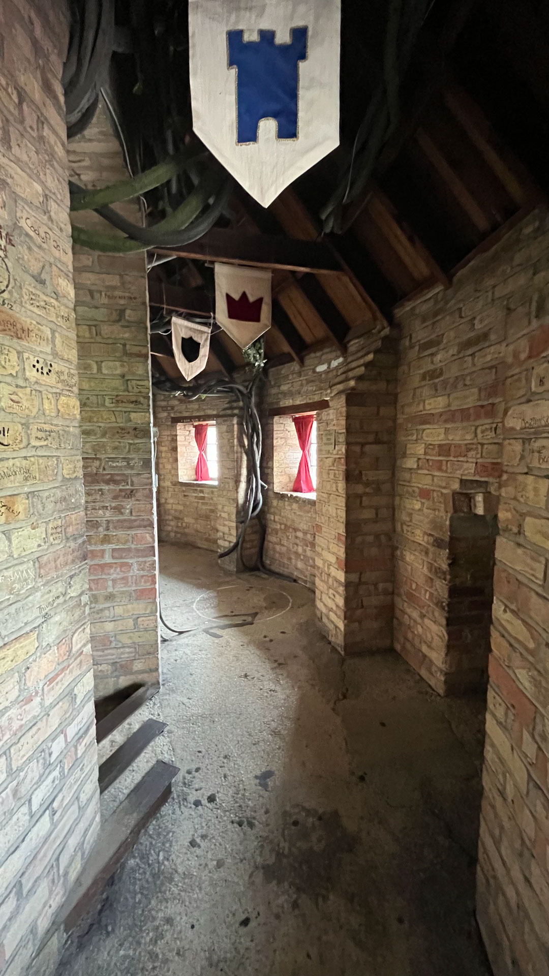 From the basement we walked down a really long tunnel that leads to the stables, the garage, the potting shed and the hunting lodge. The hunting lodge was not accessible because it was being used for one of the escape room experiences. In some parts of the tunnel are informative signs and photos along the walls.