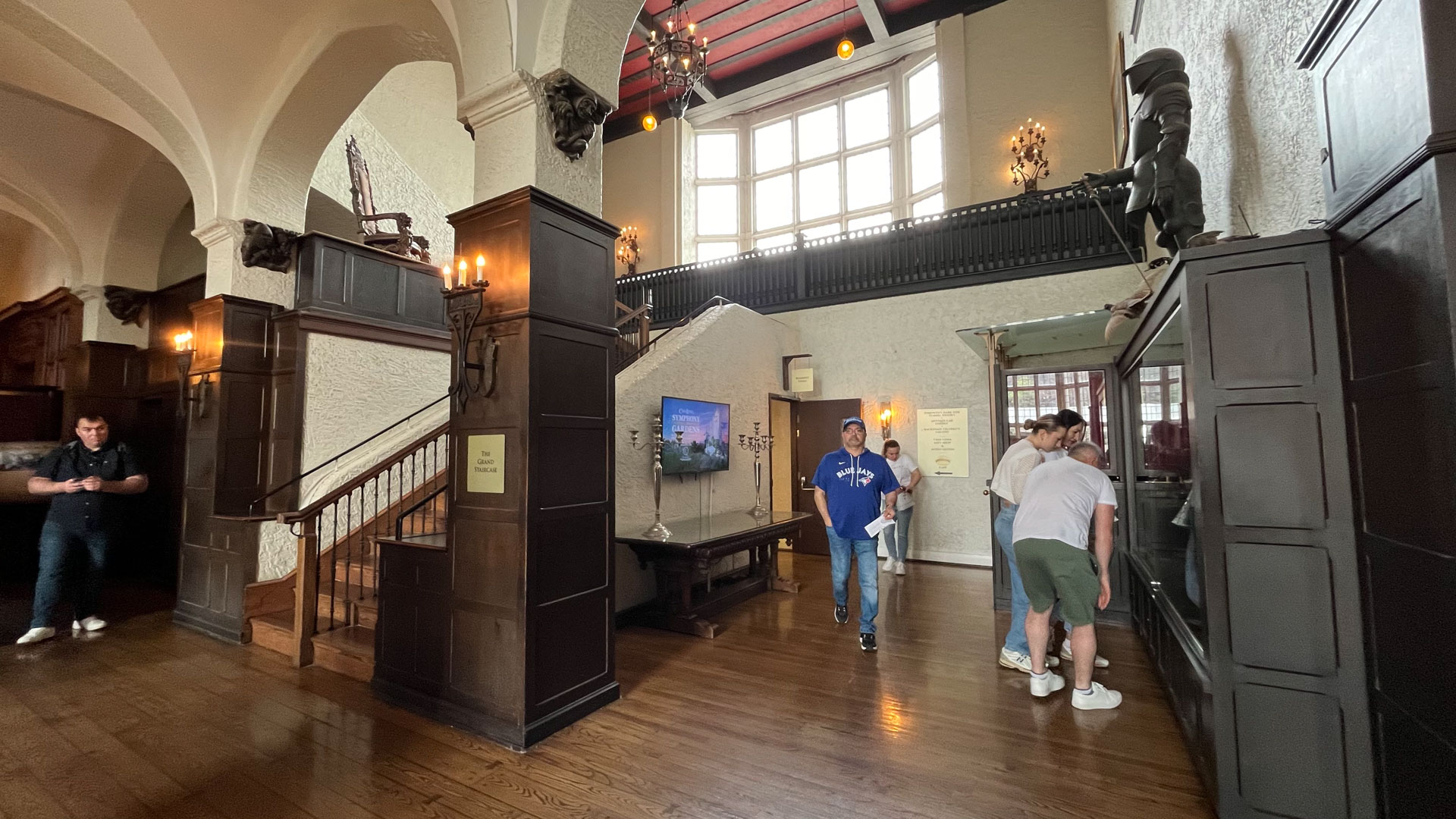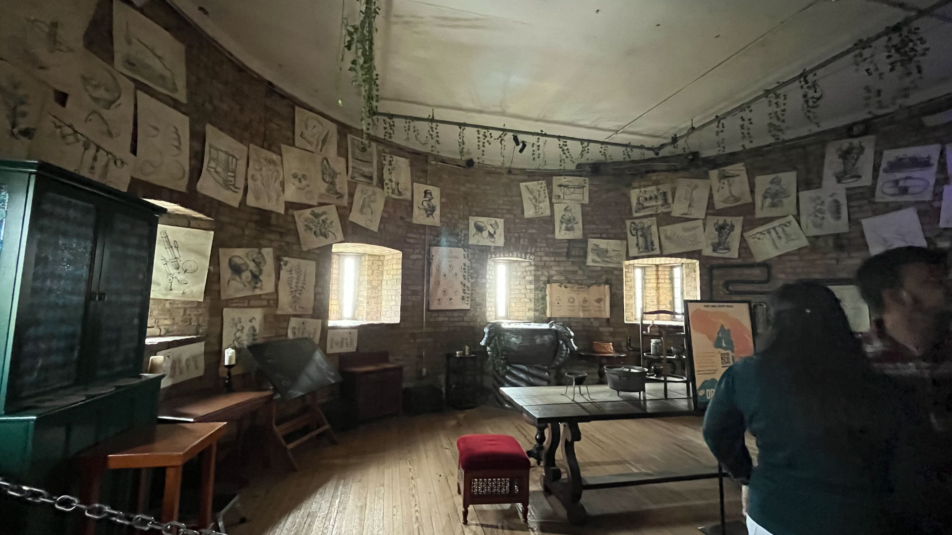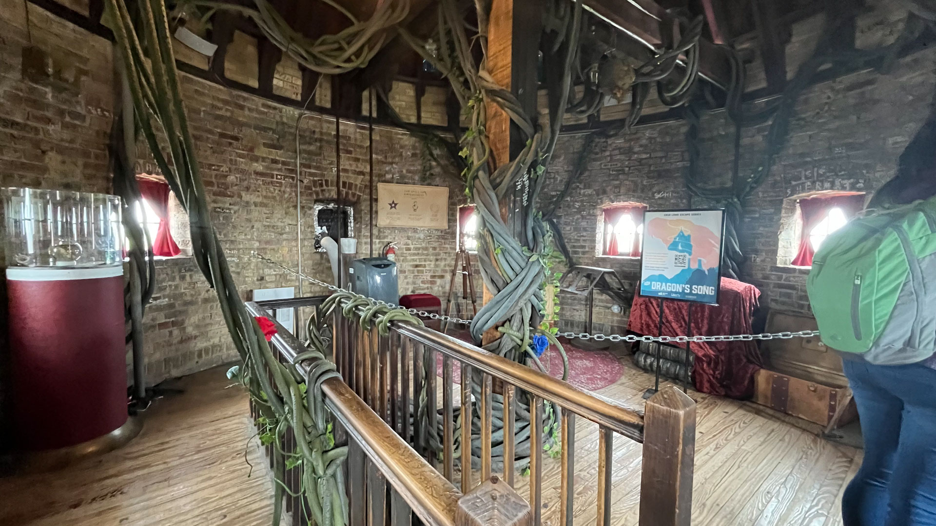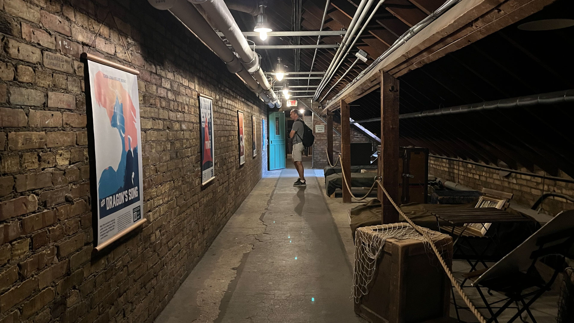 From the basement we walked down a really long tunnel that leads to the stables, the garage, the potting shed and the hunting lodge. The hunting lodge was not accessible because it was being used for one of the escape room experiences. In some parts of the tunnel are informative signs and photos along the walls.