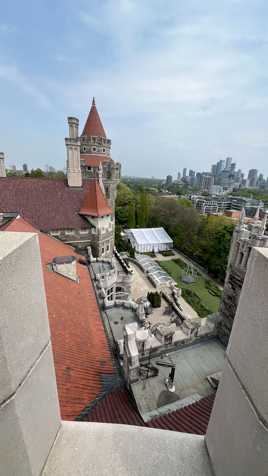 From a room on the third floor is a staircase that leads up to the attic. Once in the attic you can visit the two towers of Casa Loma – the Norman Tower and the Scottish Tower. For each of the towers, which are at different ends of the castle, you have to climb up a small, circular staircase to get to the top of the tower. The Norman tower takes you outside with great 360 degree views of the area, the Scottish tower is the highest point of the castle and is enclosed with several windows also offering great views of the area. It was fun touring the towers.