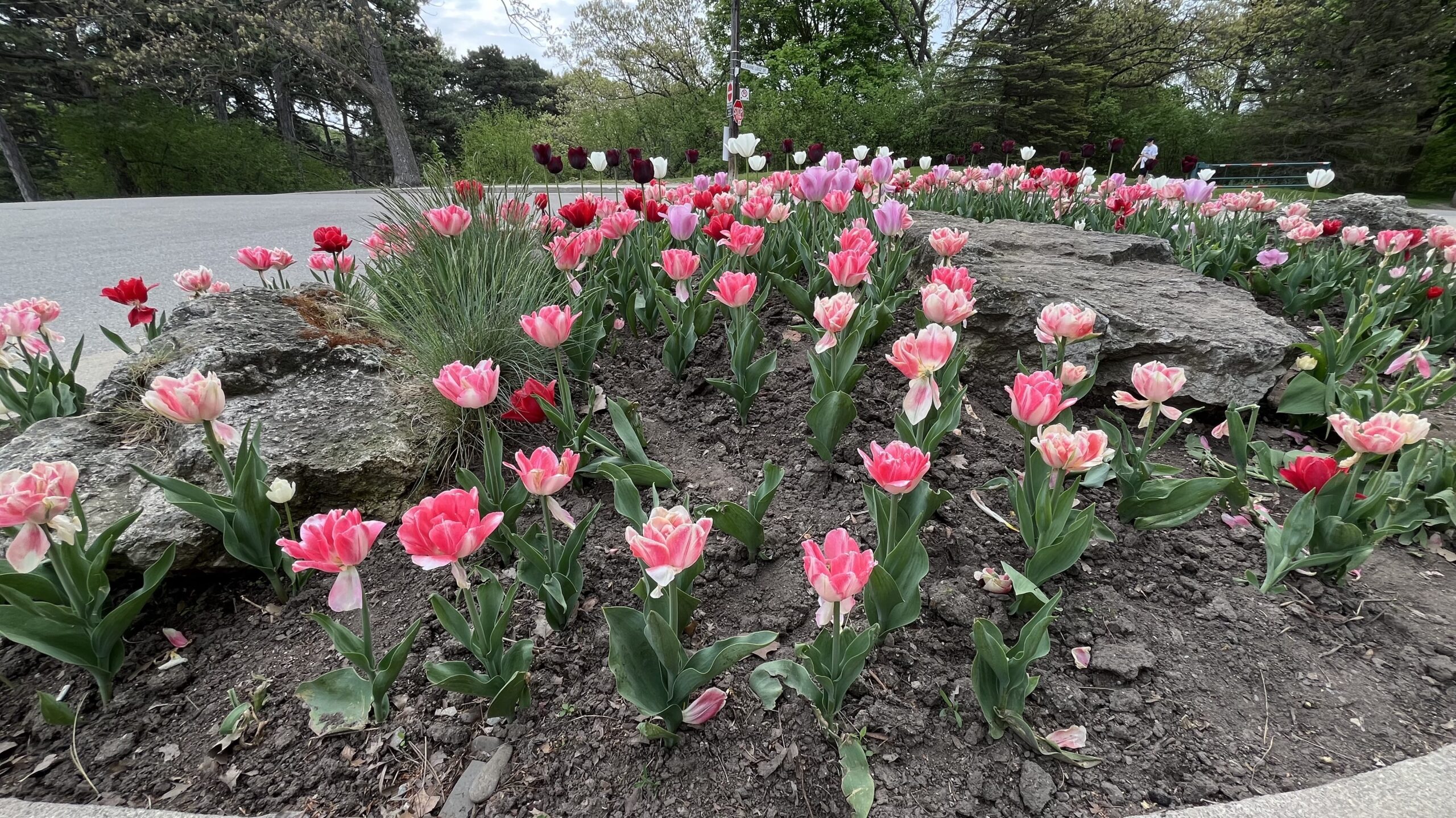 Tulips next one of the parking lots for High Park, Toronto, ON, Canada