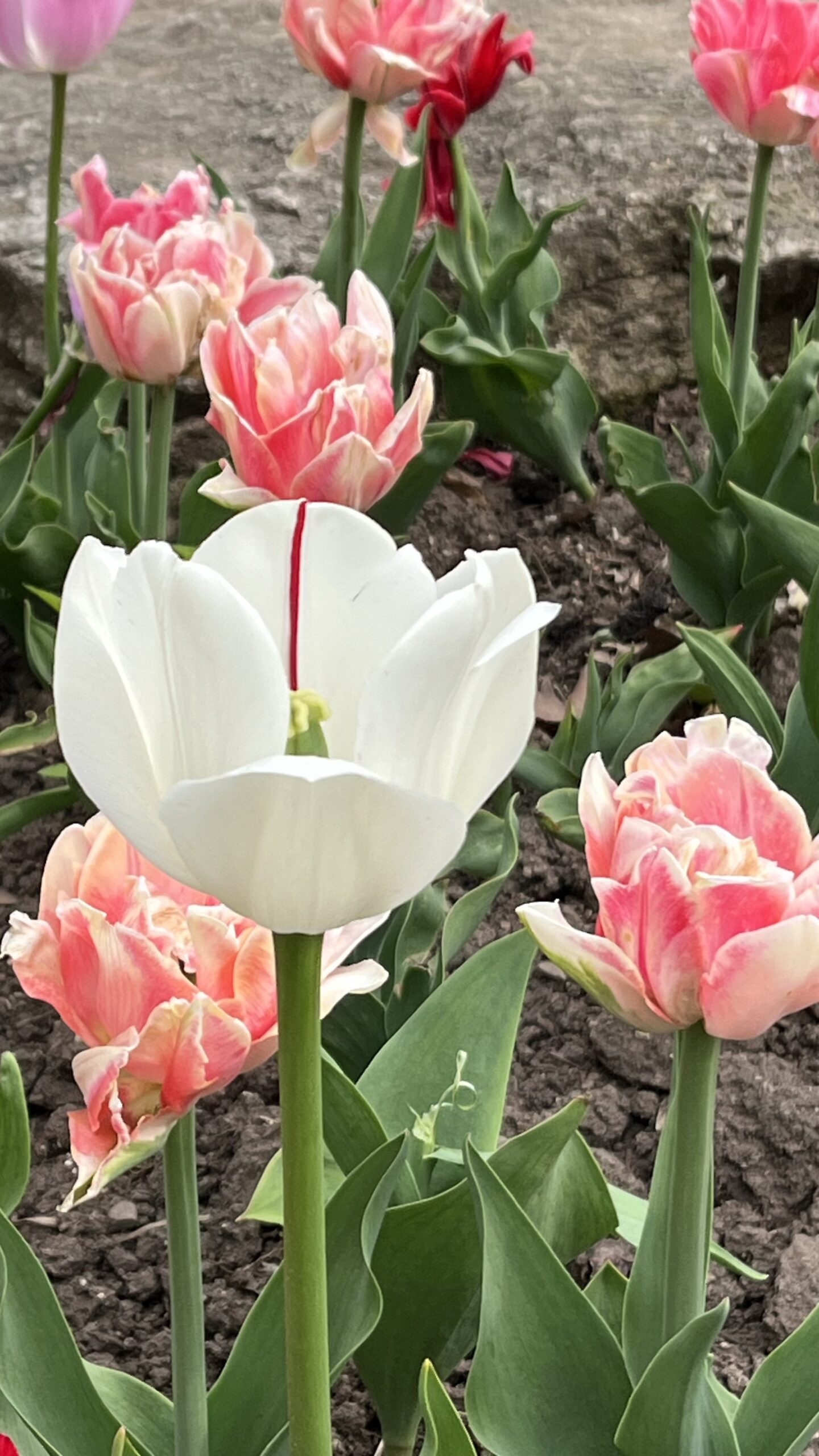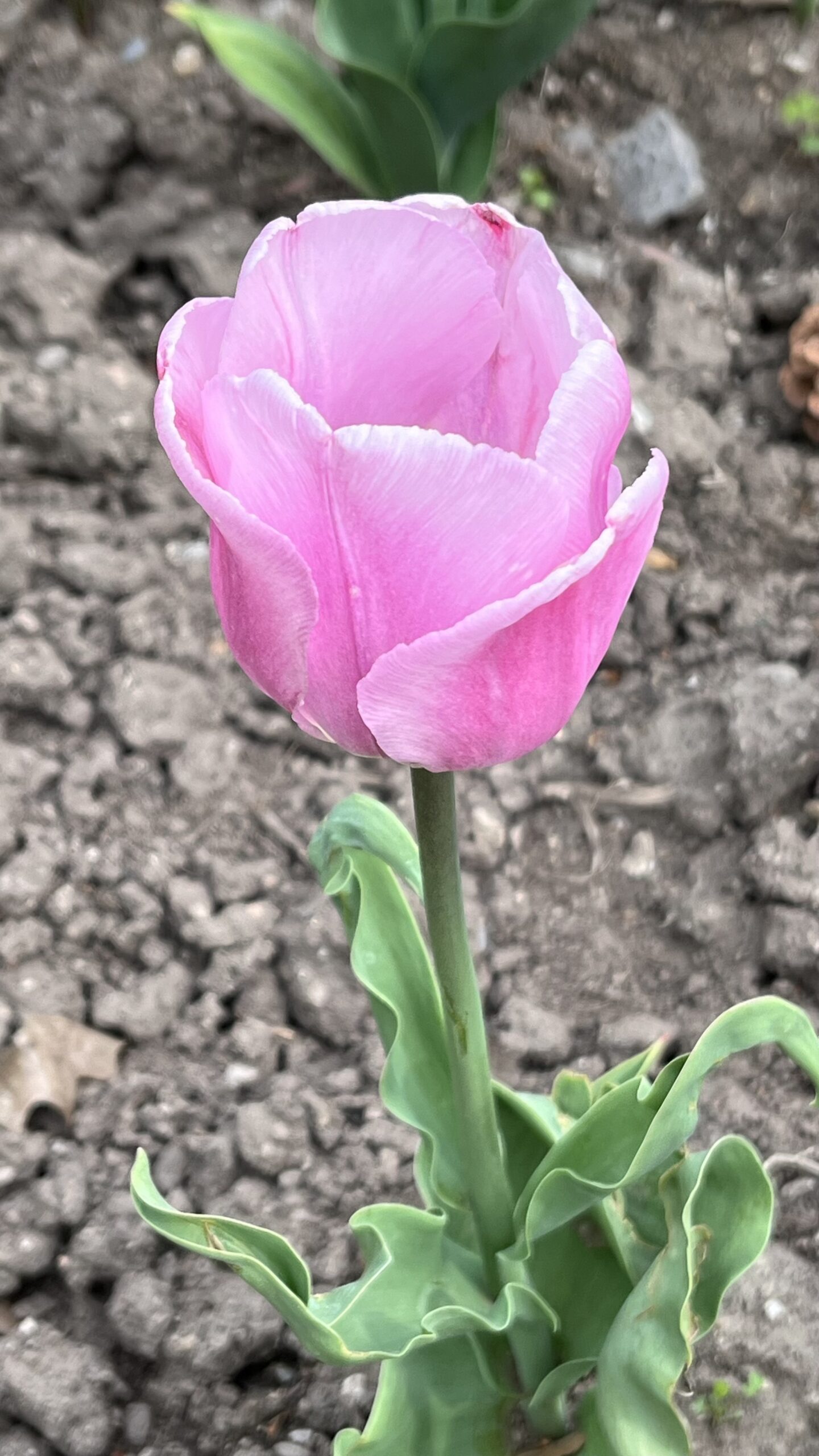 A pink tulip next one of the parking lots for High Park, Toronto, ON, Canada