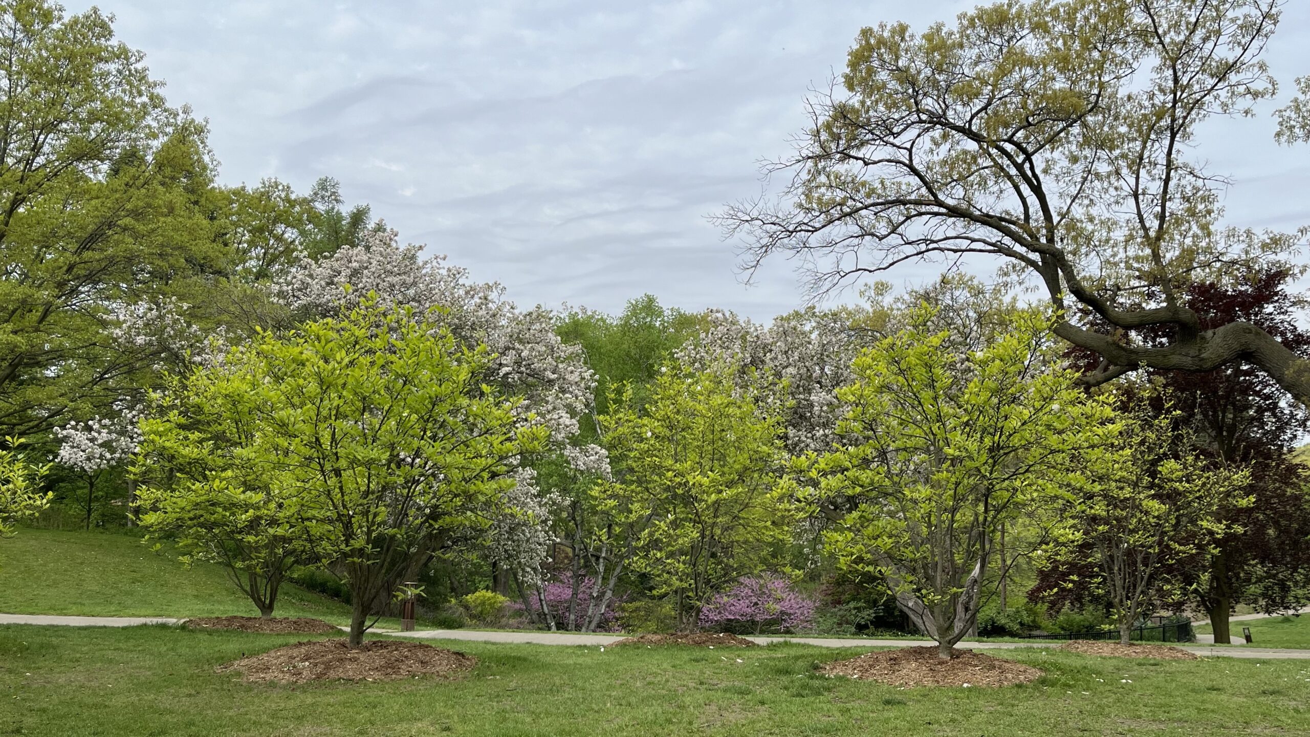 Cherry blossom trees and other trees in High Park, Toronto, ON, Canada