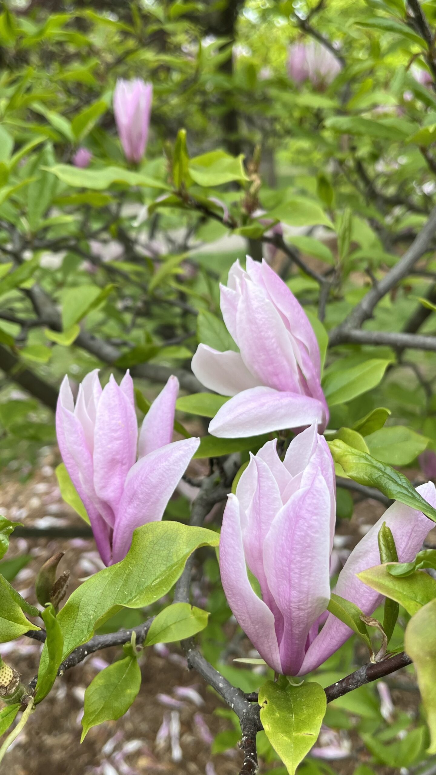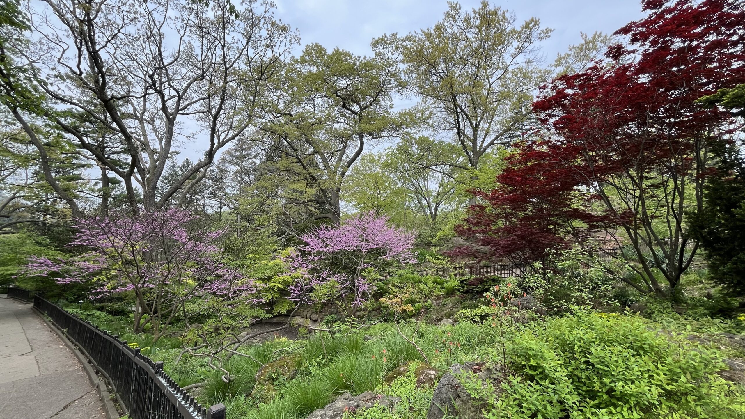 We were hoping when we first started planning this trip that the cherry blossoms would be in peak bloom at the park, but we knew from checking a very helpful website as we got closer to our trip time that the cherry blossoms would not be in bloom, well at least not the Sakuras. A kind person regularly updates that very helpful website to let people know the status of the cherry blossoms. There is one type of cherry blossom tree that blooms later than Sakuras, and those were in bloom when we were there! There are much less of that type of cherry blossom trees in the park, but there were plenty to enjoy anyways.