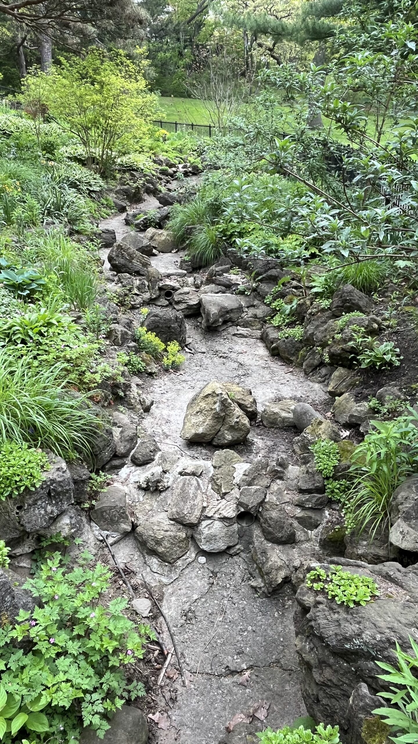 The small creek with no water in the Rock Garden in High Park, Toronto, ON, Canada