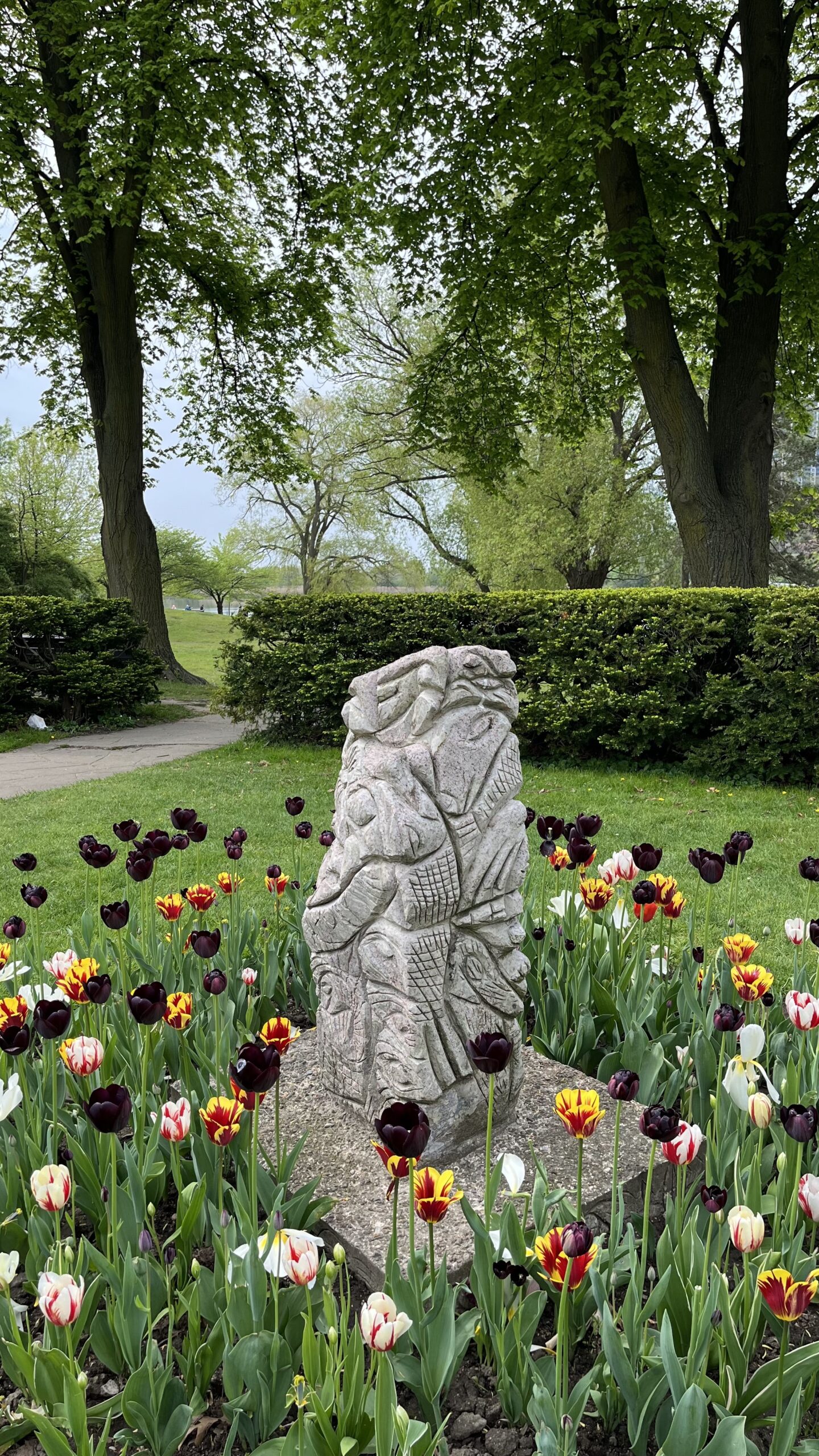 Hedged in garden with several tulip beds in High Park, Toronto, ON, Canada