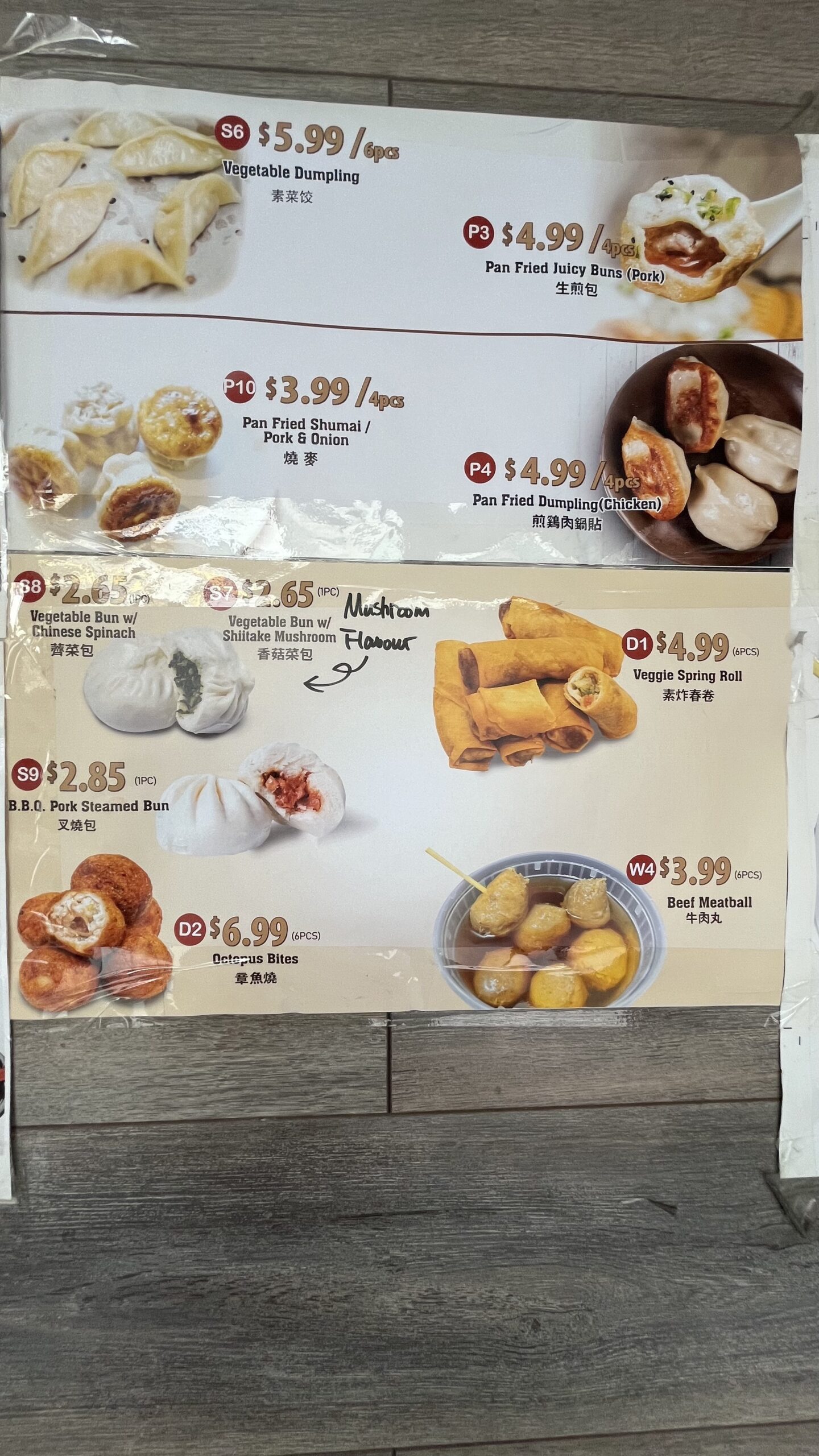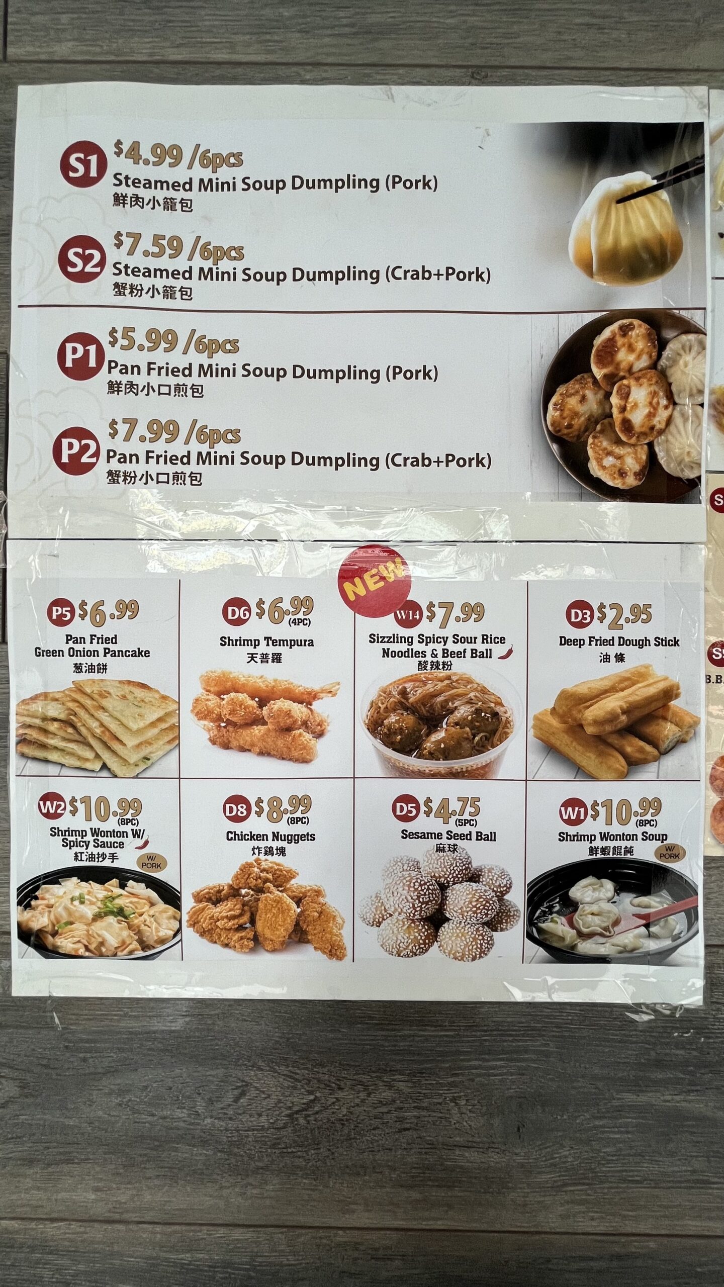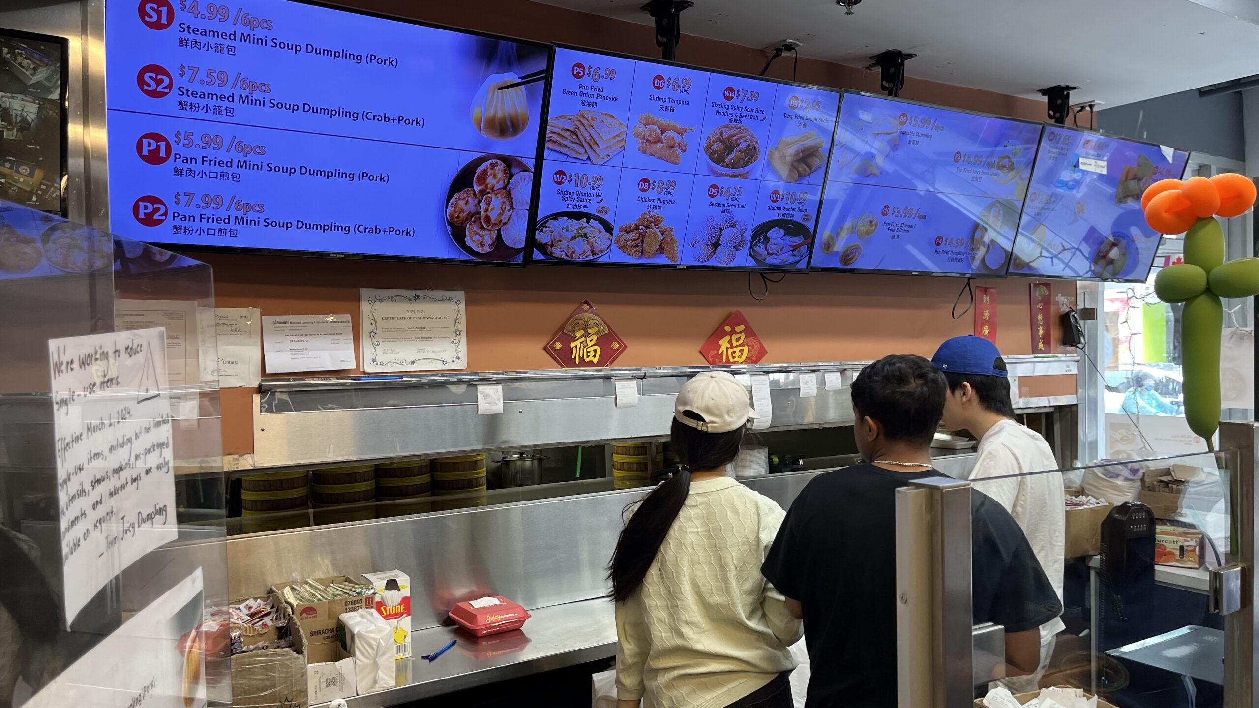Part of the menu for Juicy Dumpling, Chinatown, Toronto, ON, Canada