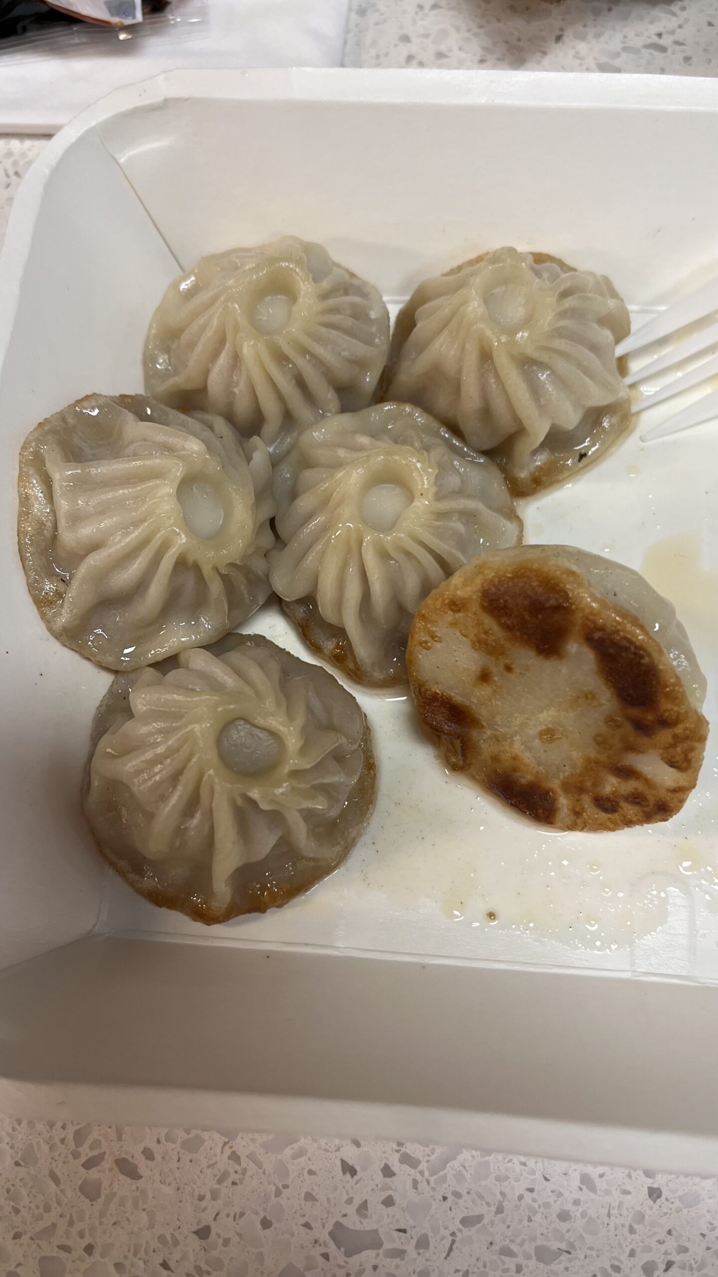 Pan fried mini soup dumplings (pork) at Juicy Dumpling, Chinatown, Toronto, ON, Canada