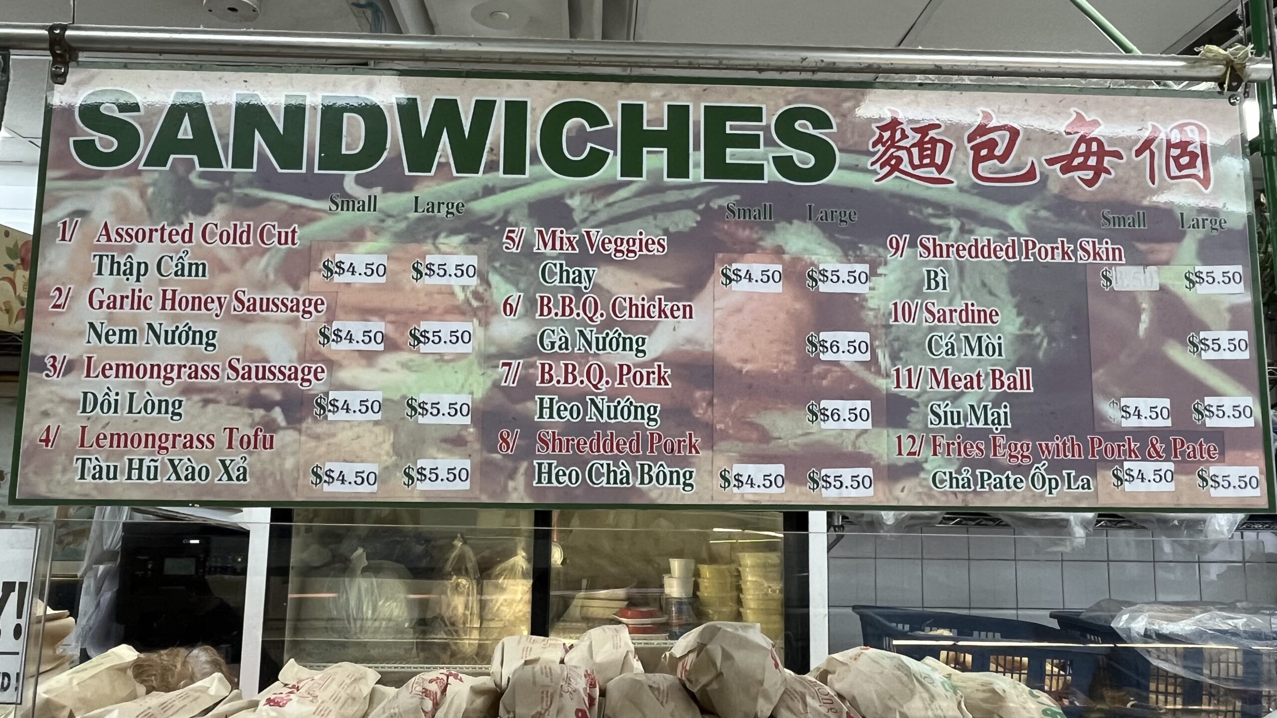 At Bánh Mì Nguyen Huong we bought one pre-made bánh cuốn, which was $4.00, one bánh mì, and one order of chả giò. The bánh mì was just ok; we enjoyed the other two items more than the bánh mì.