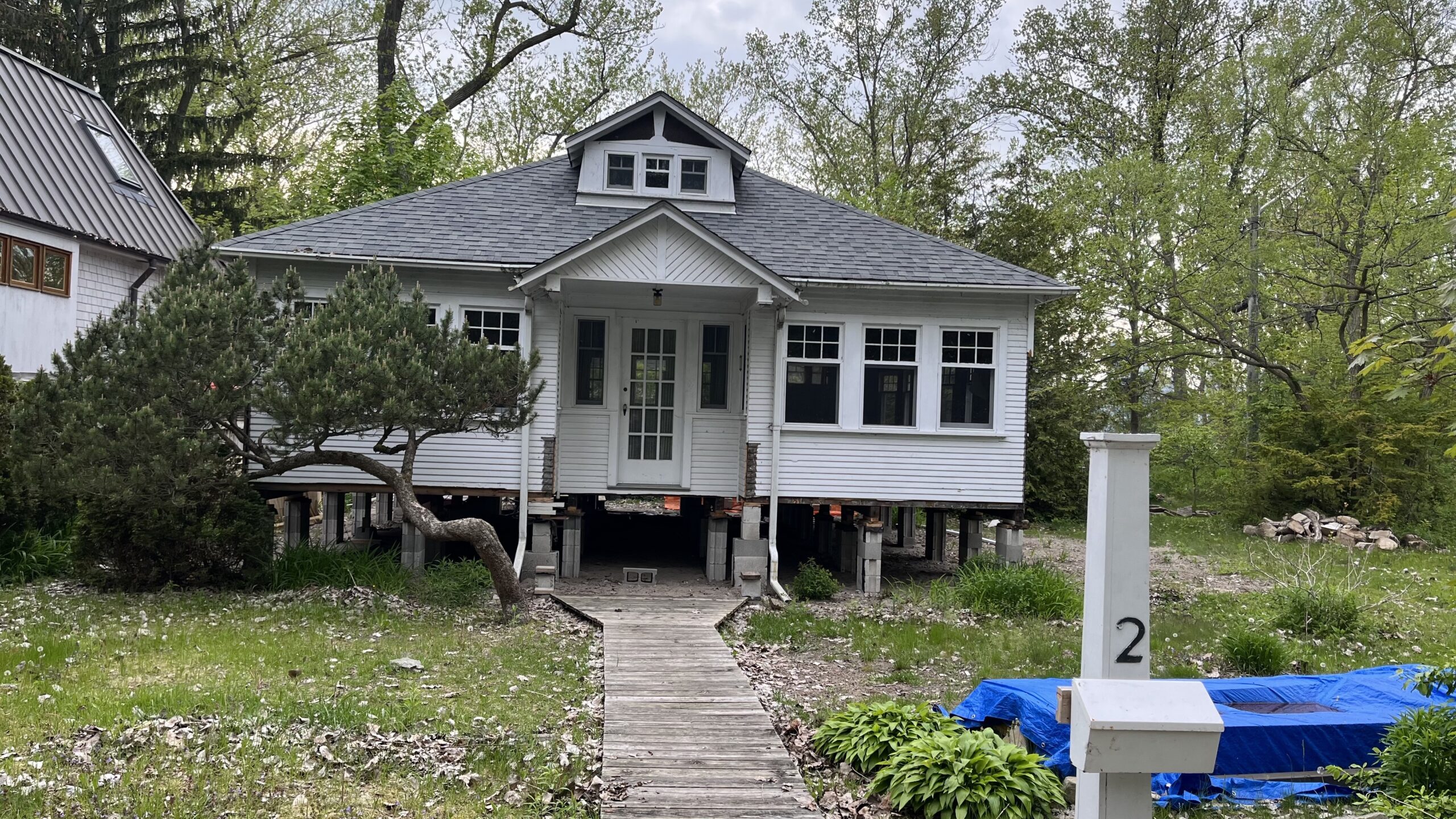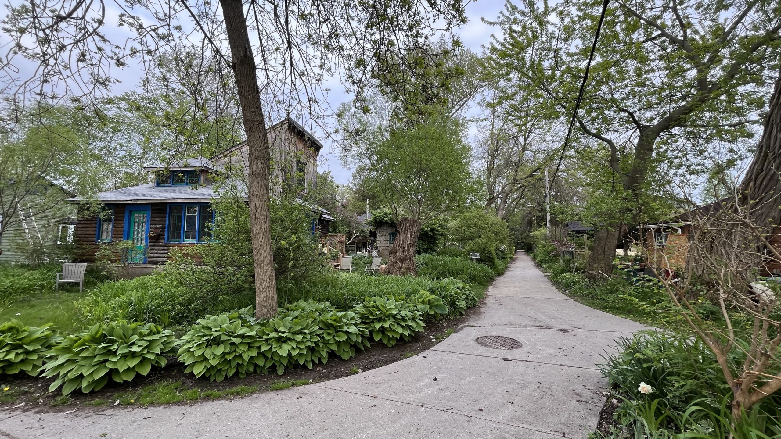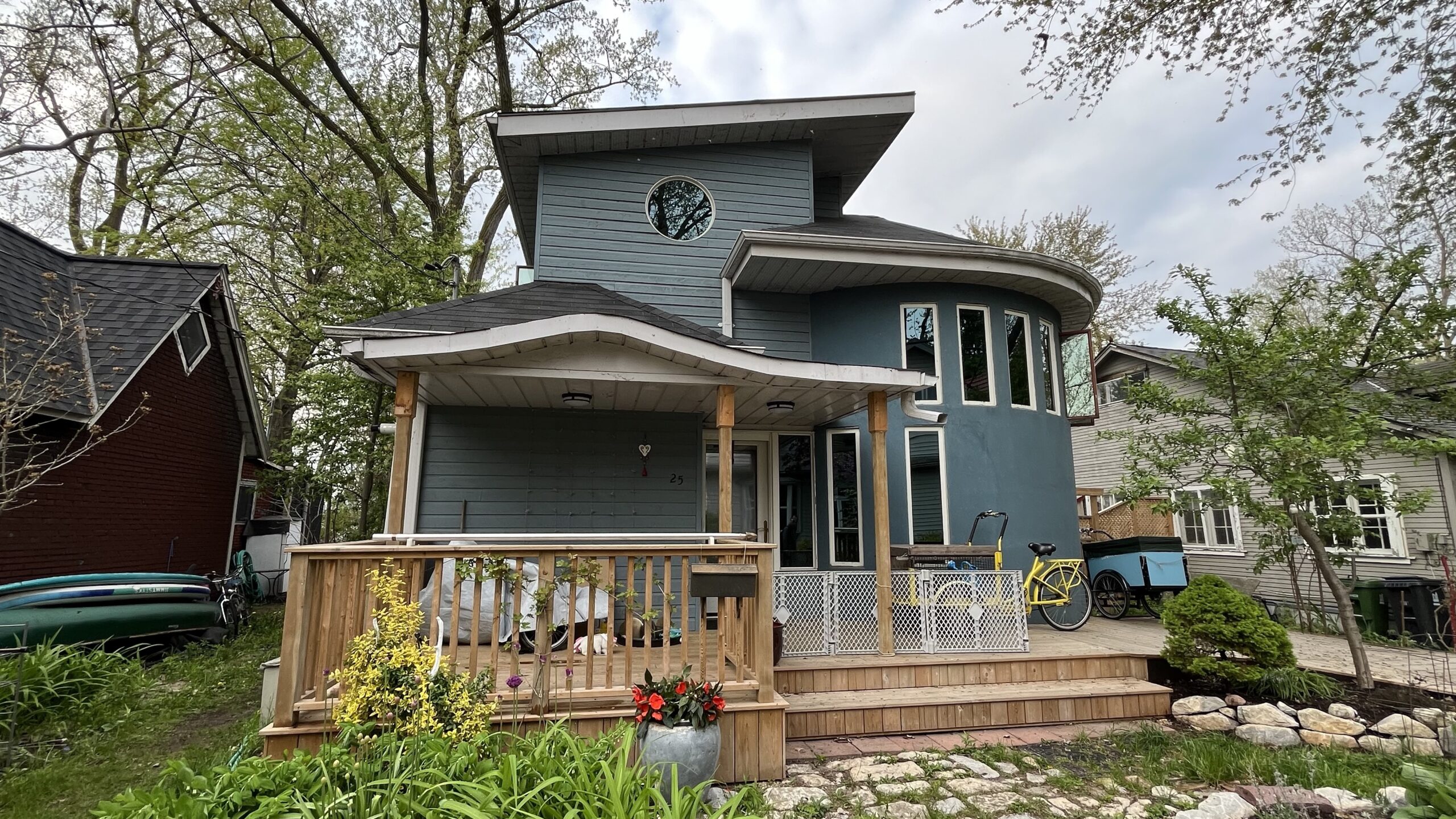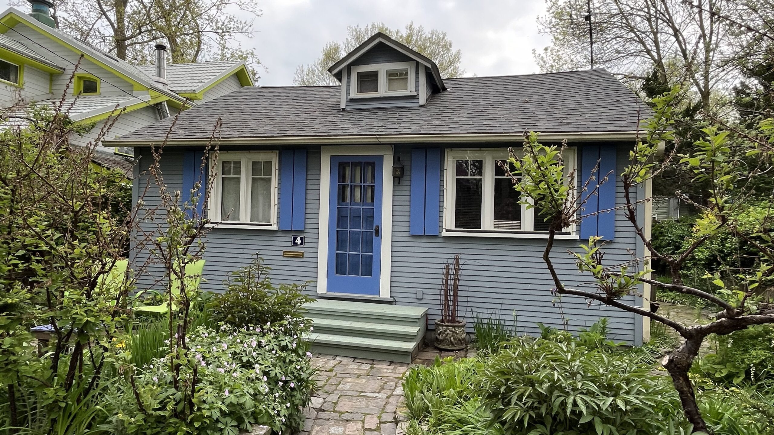 A blue-grey home on Wards Island, Toronto Islands, Toronto, ON, Canada