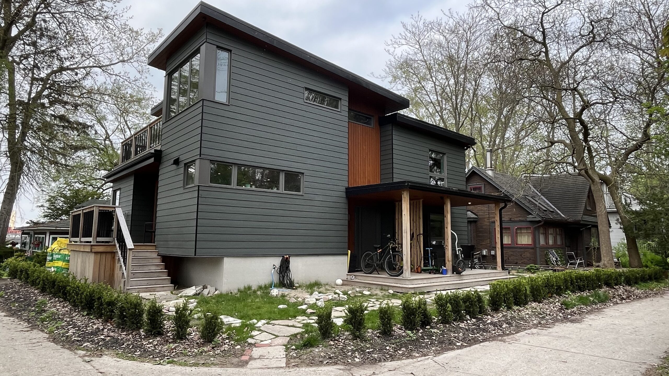 A modern grey house on Wards Island, Toronto Islands, Toronto, ON, Canada