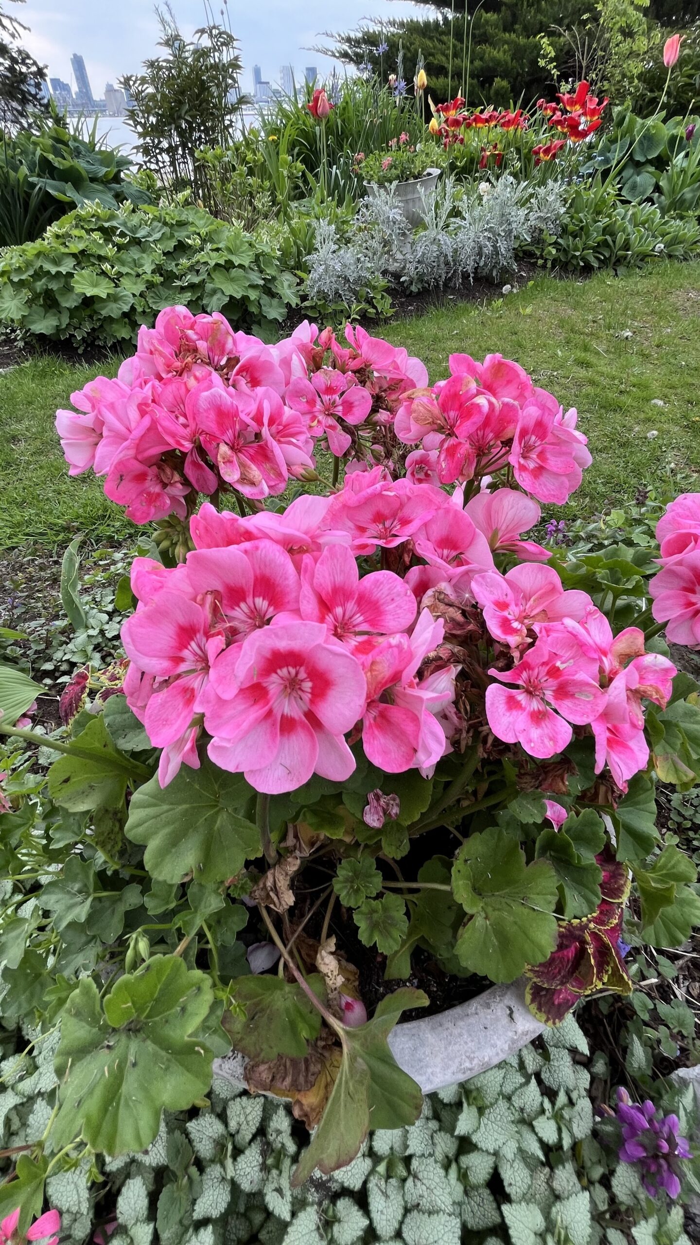 Vibrant pink flowers in Deenie & Freda’s Garden on Wards Island, Toronto Islands, Toronto, ON, Canada