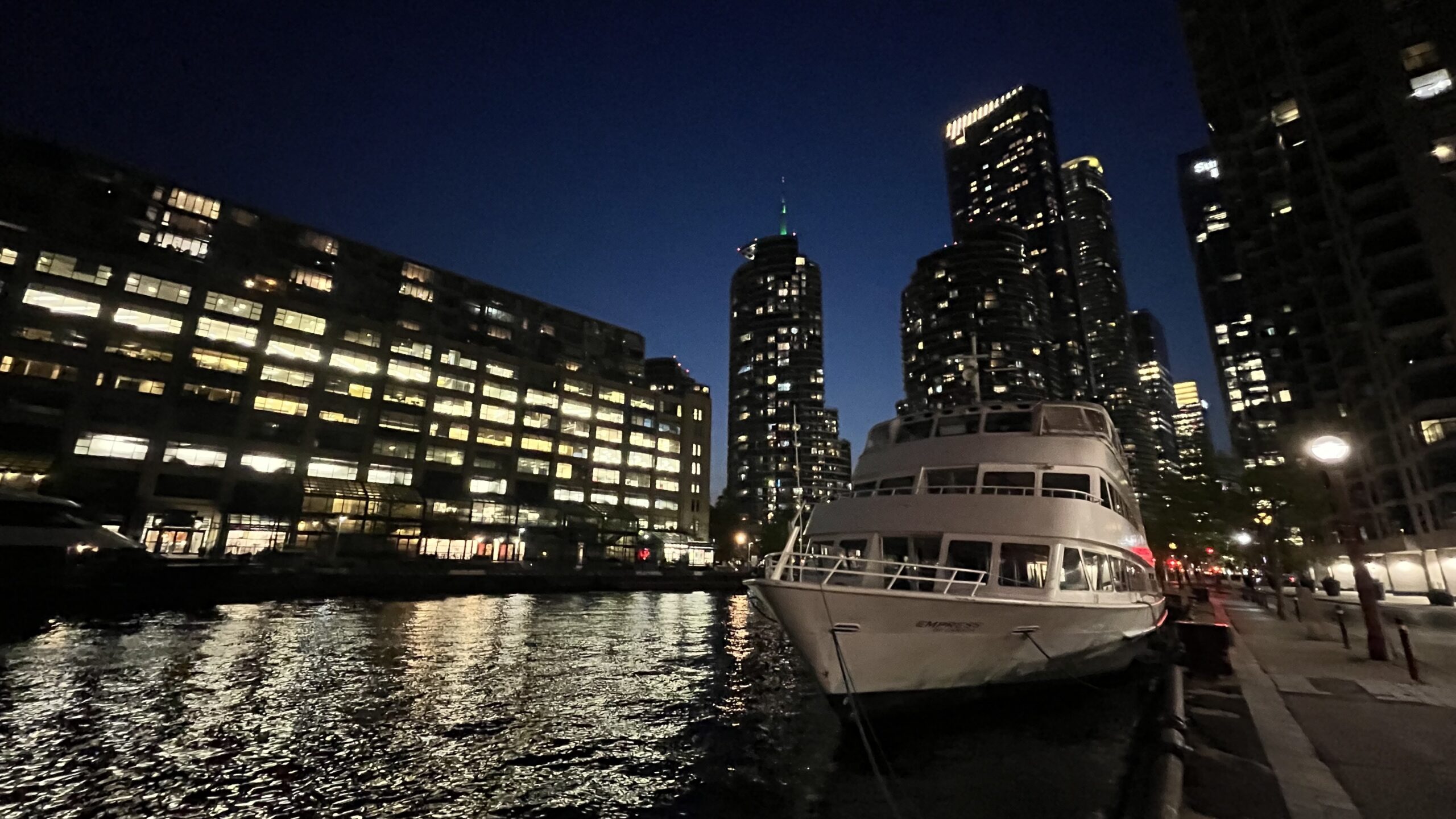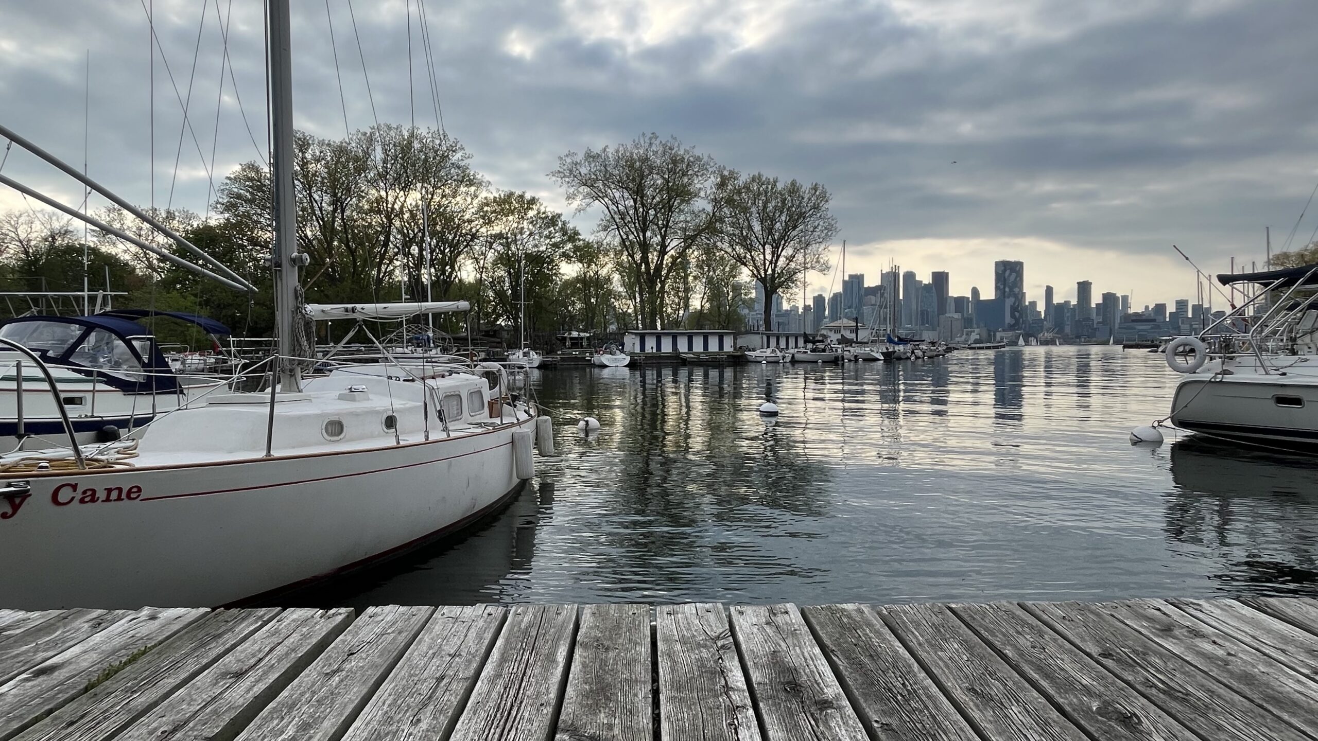 A yacht docked near the Jack Layton Ferry Terminal, Toronto, ON, Canada