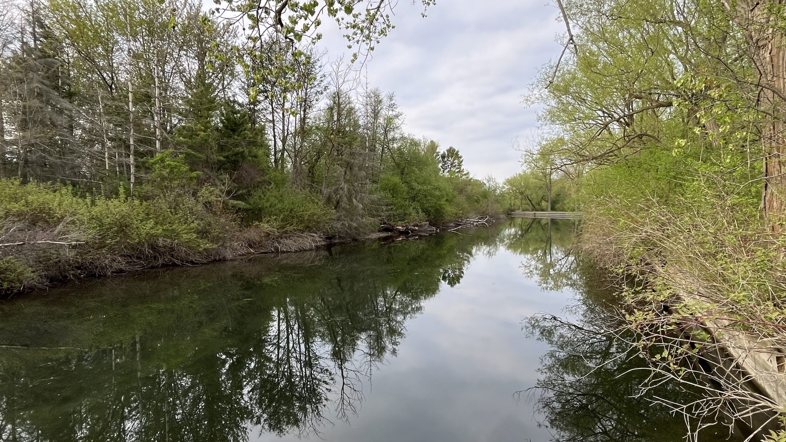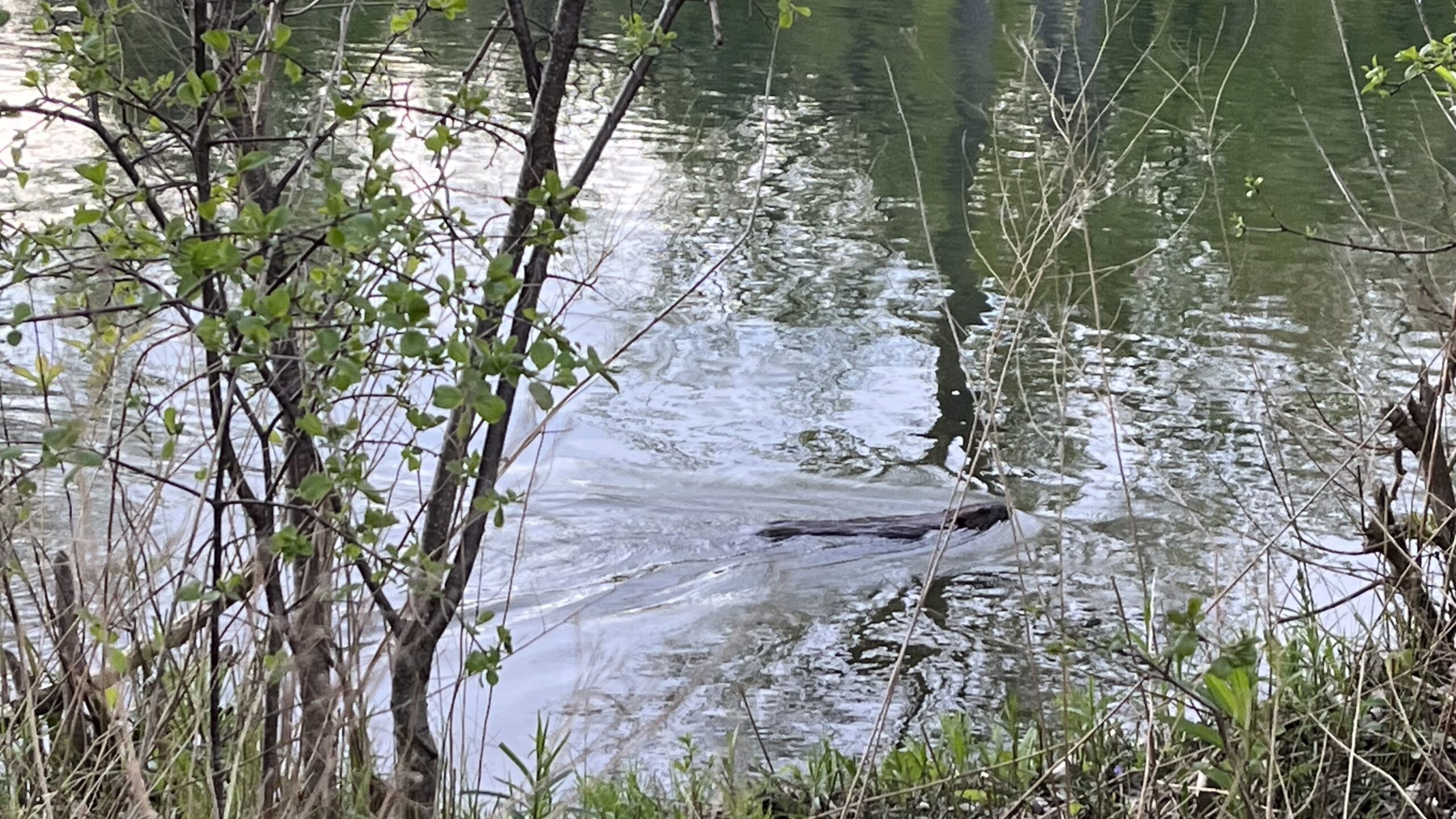 As we continued on, there was an area with lake water on our right. We saw a beaver swimming in the water; when it saw me coming over to get a photo, it swam quickly under the water. I got a quick photo of it though just before it went under! The following photos are of the walk from the marina in the photos above until just before we reached the pier.