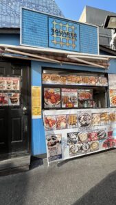 We ended up trying food from three places for our dinner. We ordered onion rings from Squares and Affaires, which offers sweet and savory dishes, most of which, if not all, are fried. Some of the items they offer are funnel cake, chicken and waffle, corn dogs, fried shrimp, fried calamari and much more. It felt a lot like food you can get at a fair. Oh! I just realized – maybe that’s the reason why part of the name of this food stall has the word “fair” in it! The onion rings we ordered were very good!