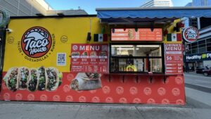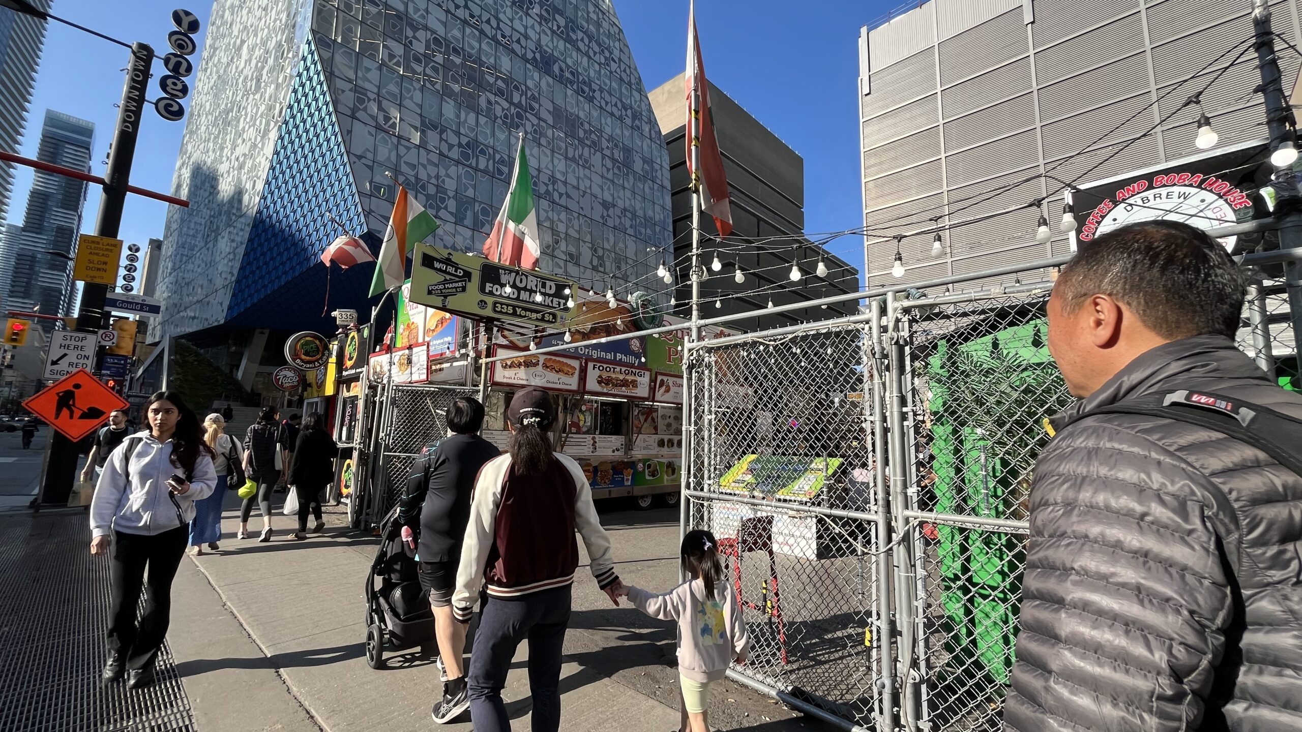 One thing we wish we knew was that the area we ate at is not the only place you can get food from at World Food Market. Right behind that area, facing Gould Steet, are a few more food stalls; we didn’t notice those until after we had eaten and started walking on Yonge street again.