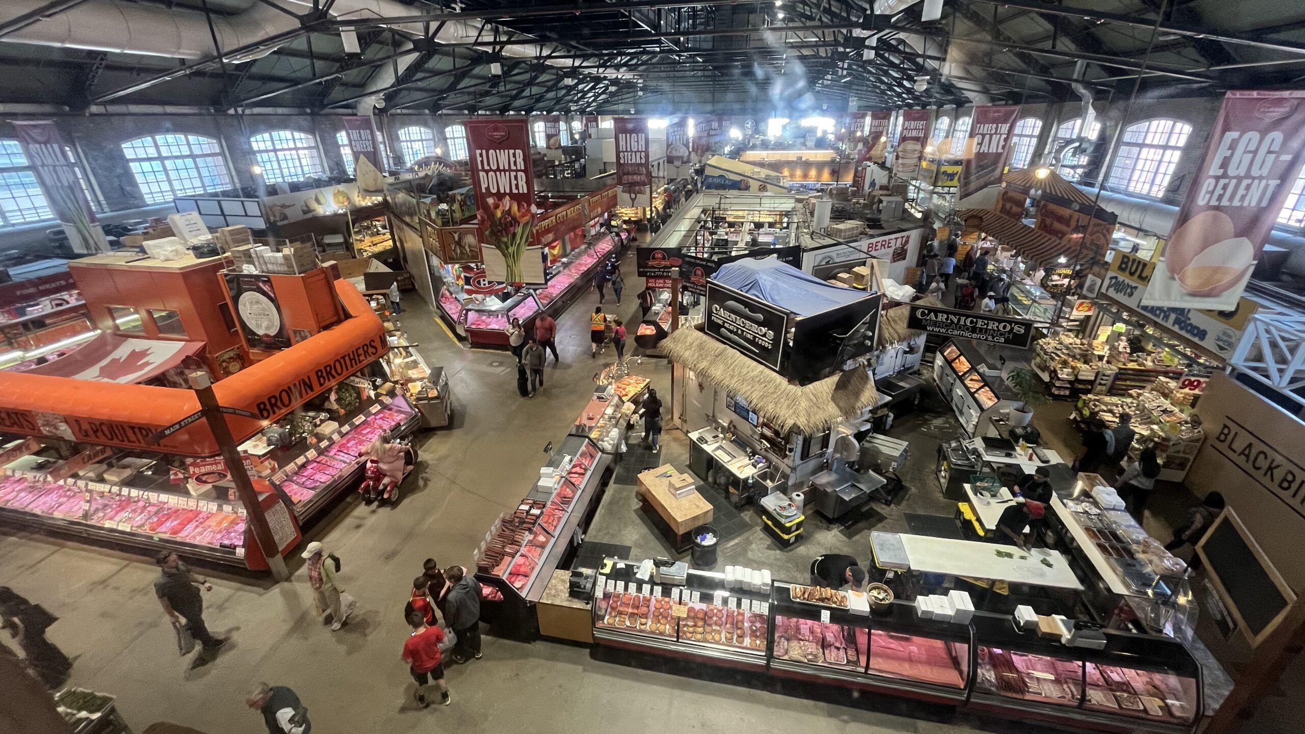 View of the market below from The Market Gallery at St. Lawrence Market, Toronto, ON, Canada