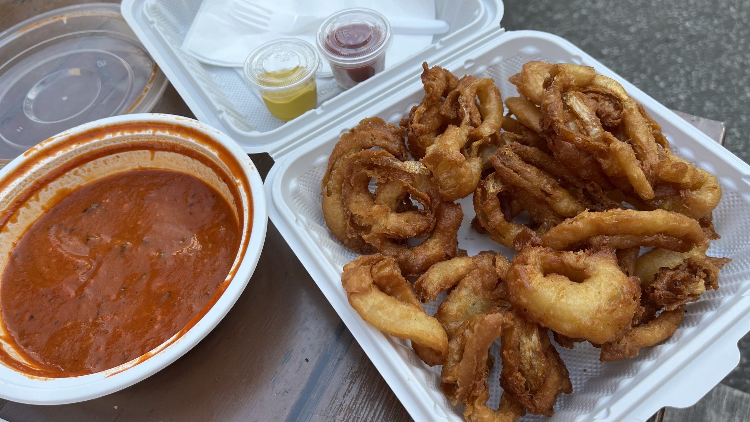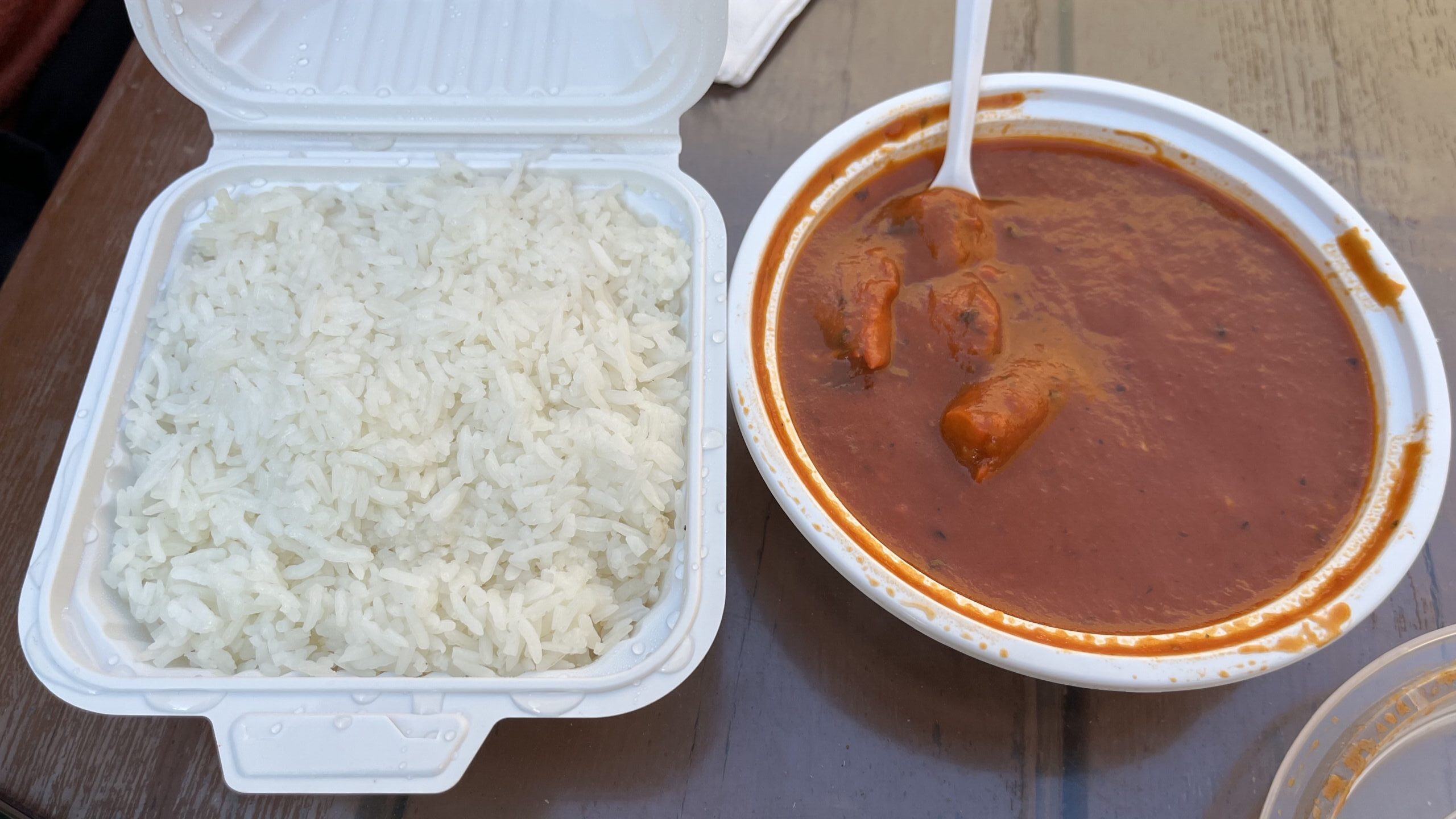 We also ordered butter chicken with rice from Karma’s Tibetan, Nepalese and Indian food. The butter chicken was delicious and we dipped our onion rings in the butter chicken sauce because they gave us a generous portion of the sauce.