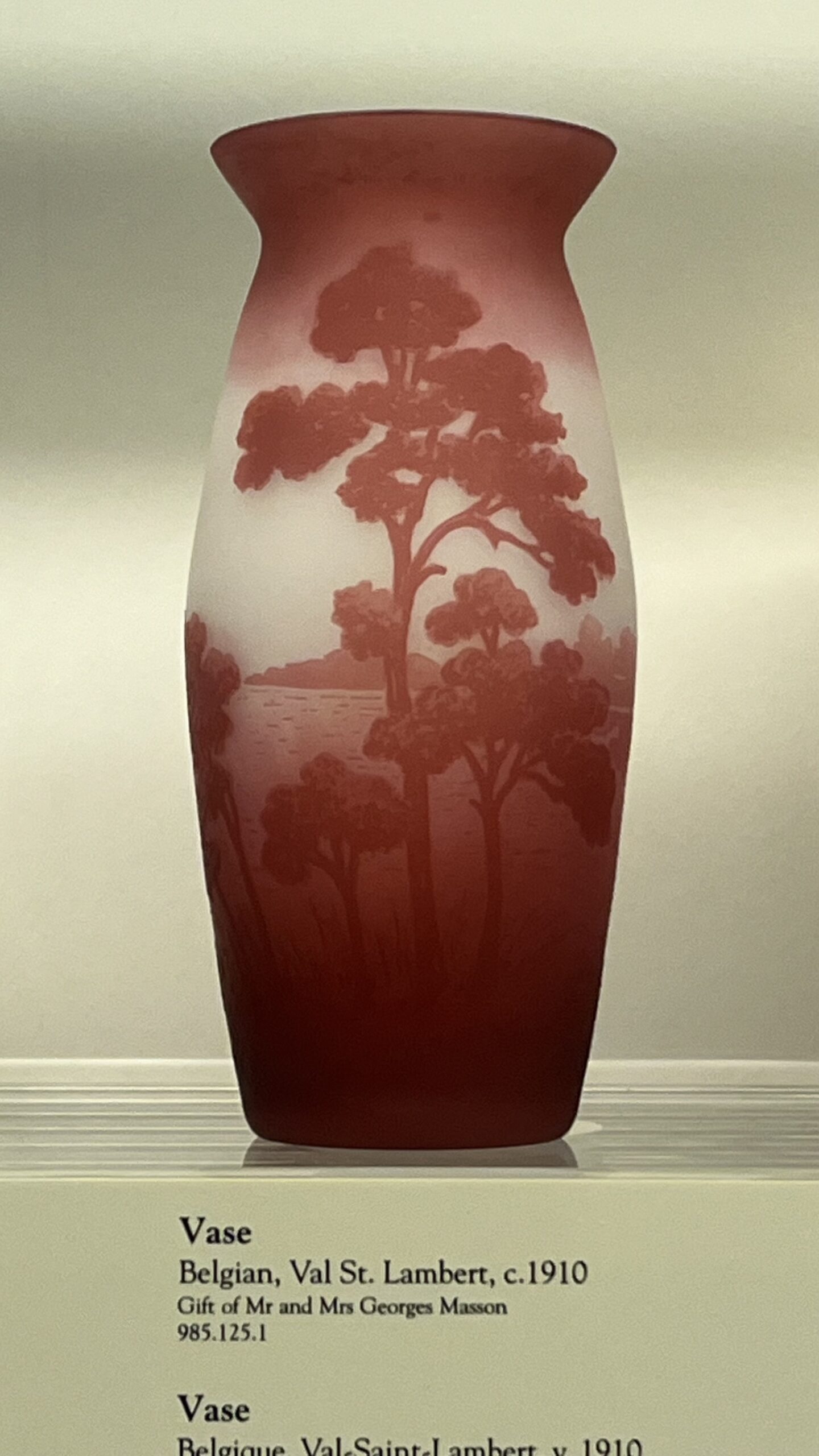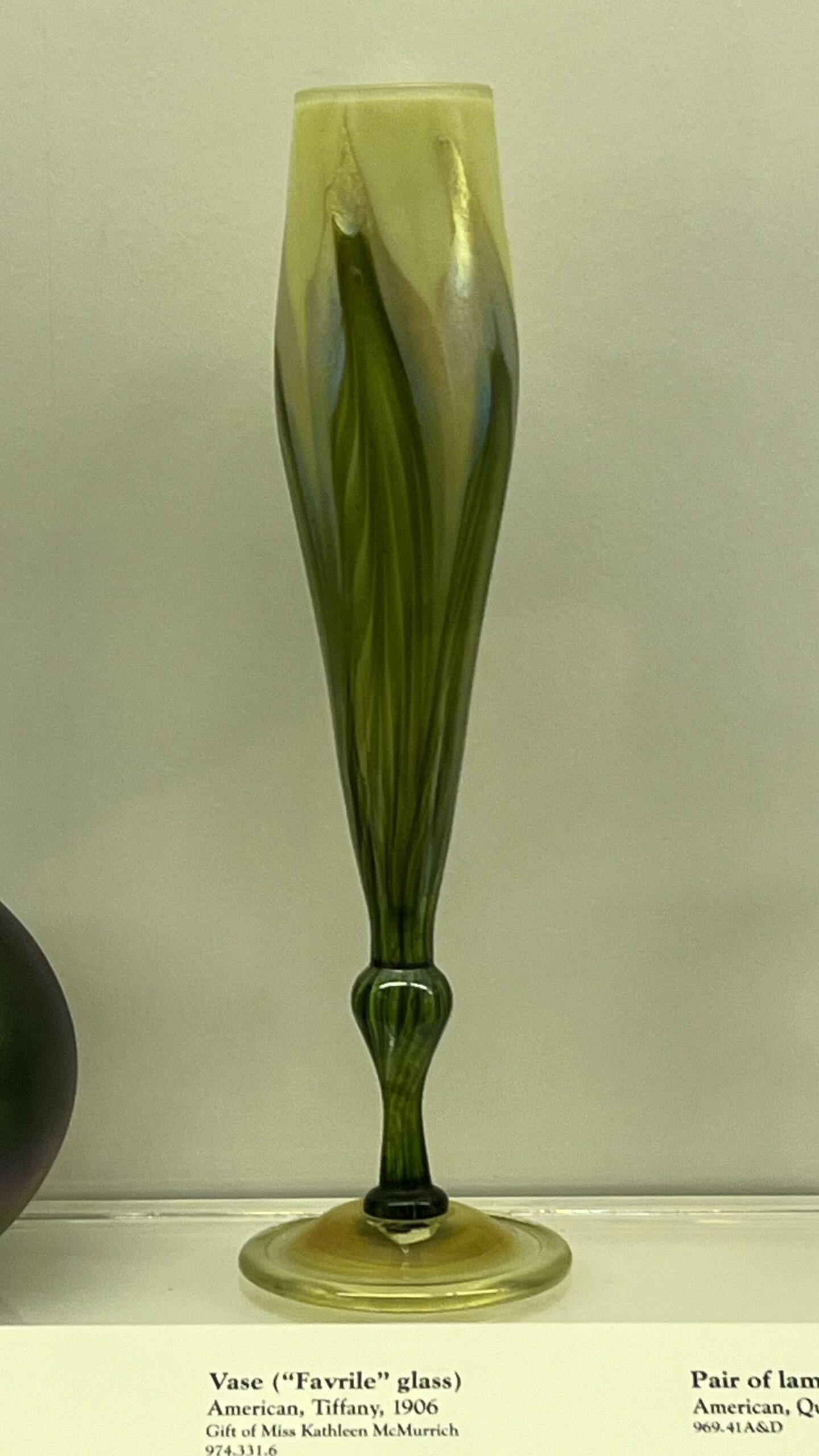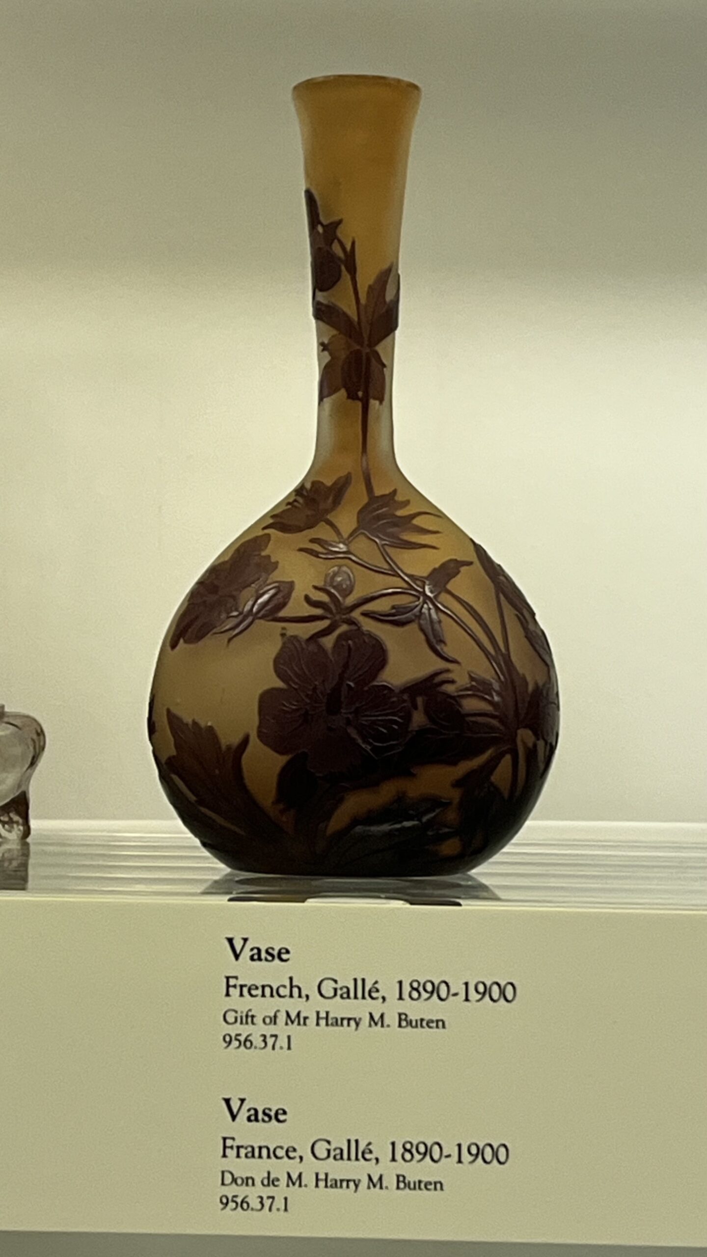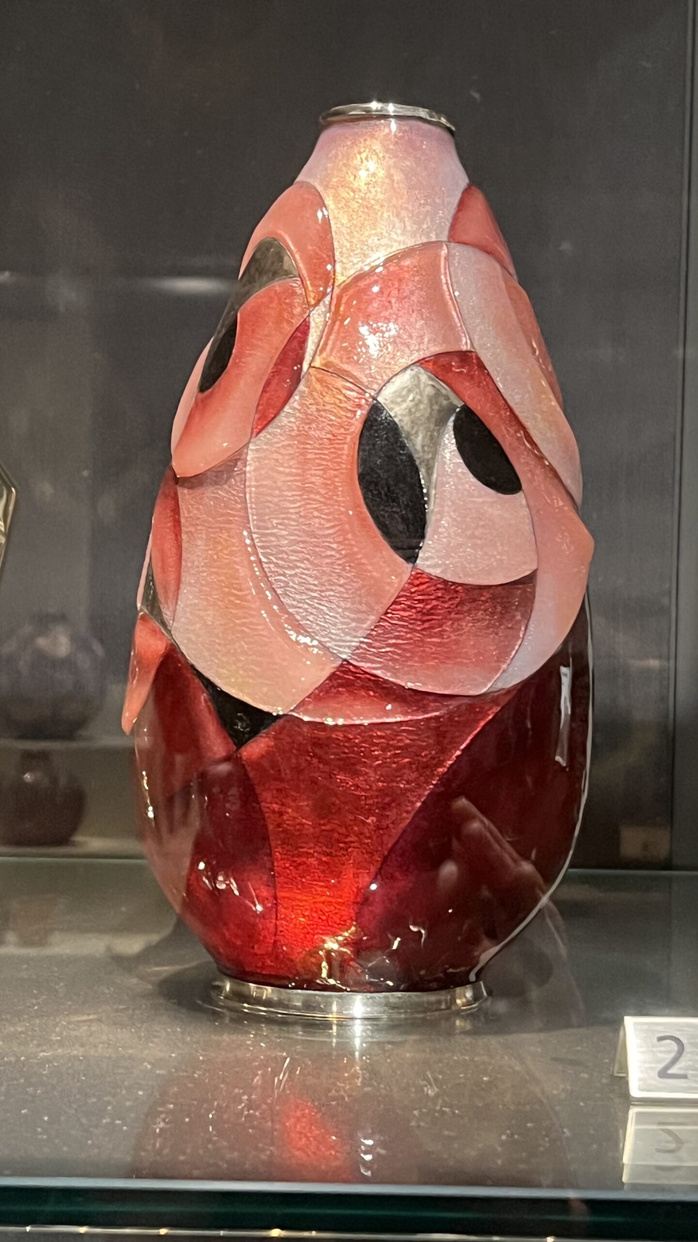 Next we entered an area that I took tons of photos in – a gallery of vases and other similar items throughout the millenniums. Some of the pieces were so beautiful! There are, of course, vases ranging in size from very small to much larger. And, of course, vases of varying materials are on display as well as a lovely variety of finishes – some of the iridescent ones were so striking.