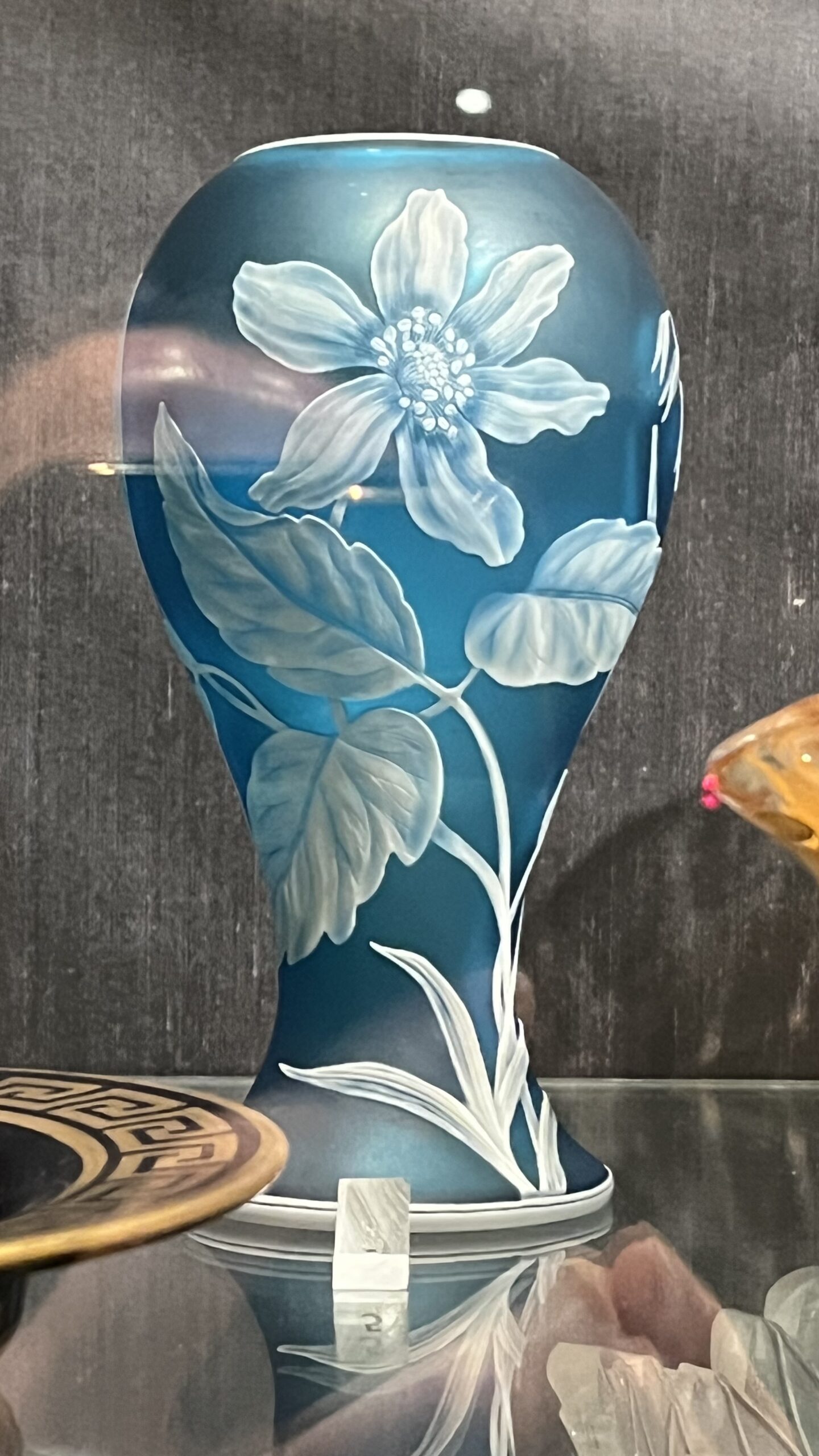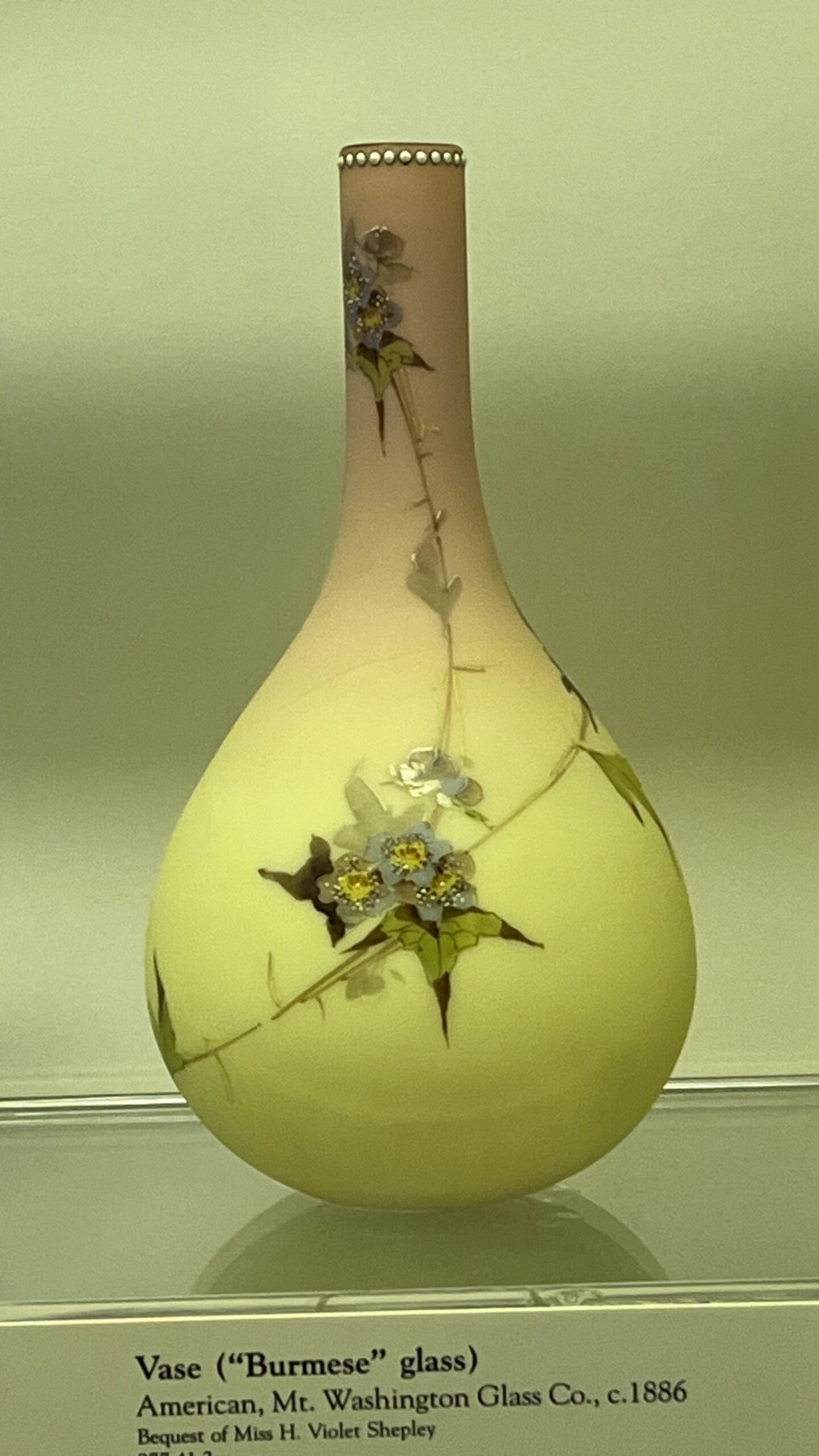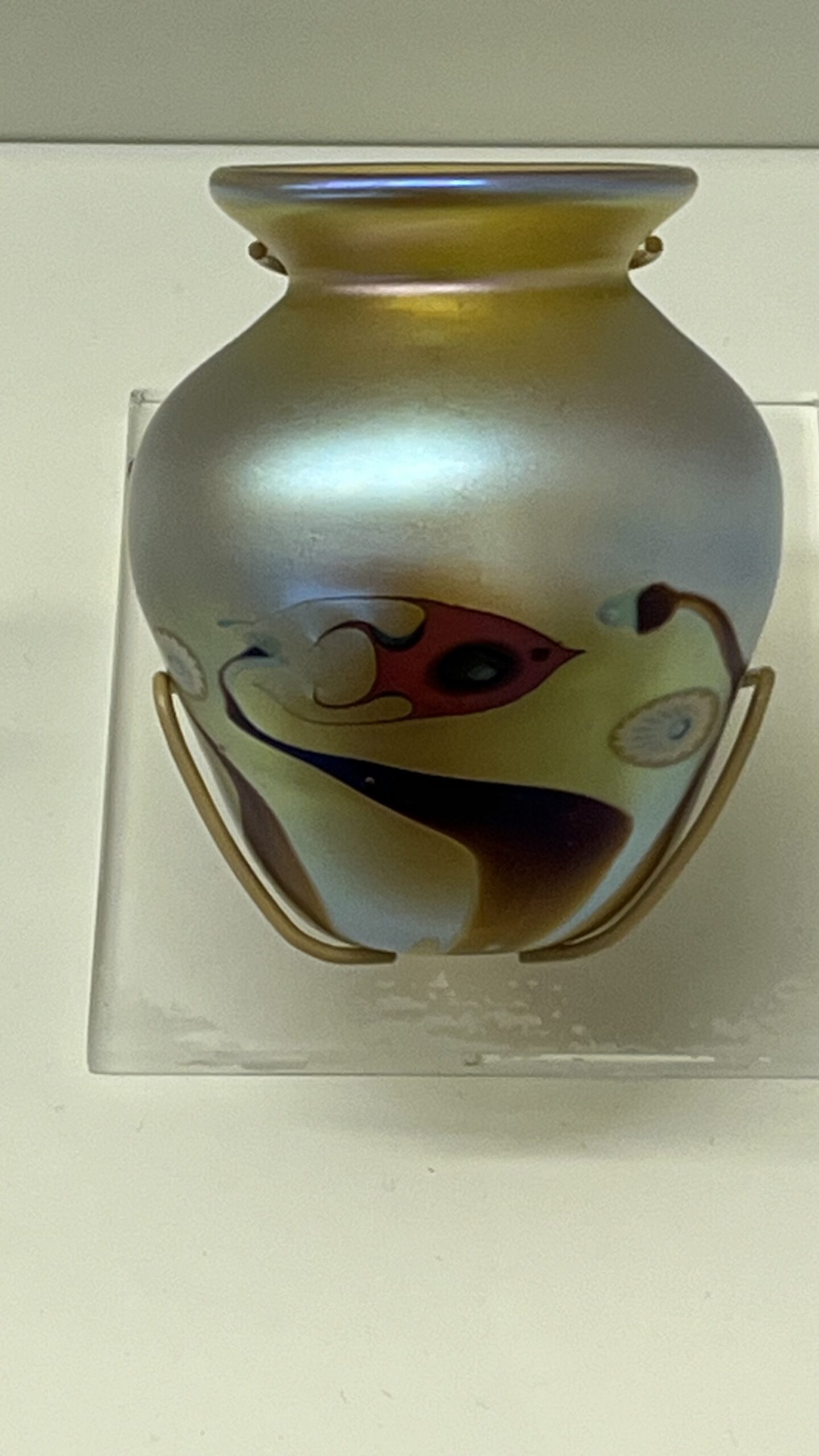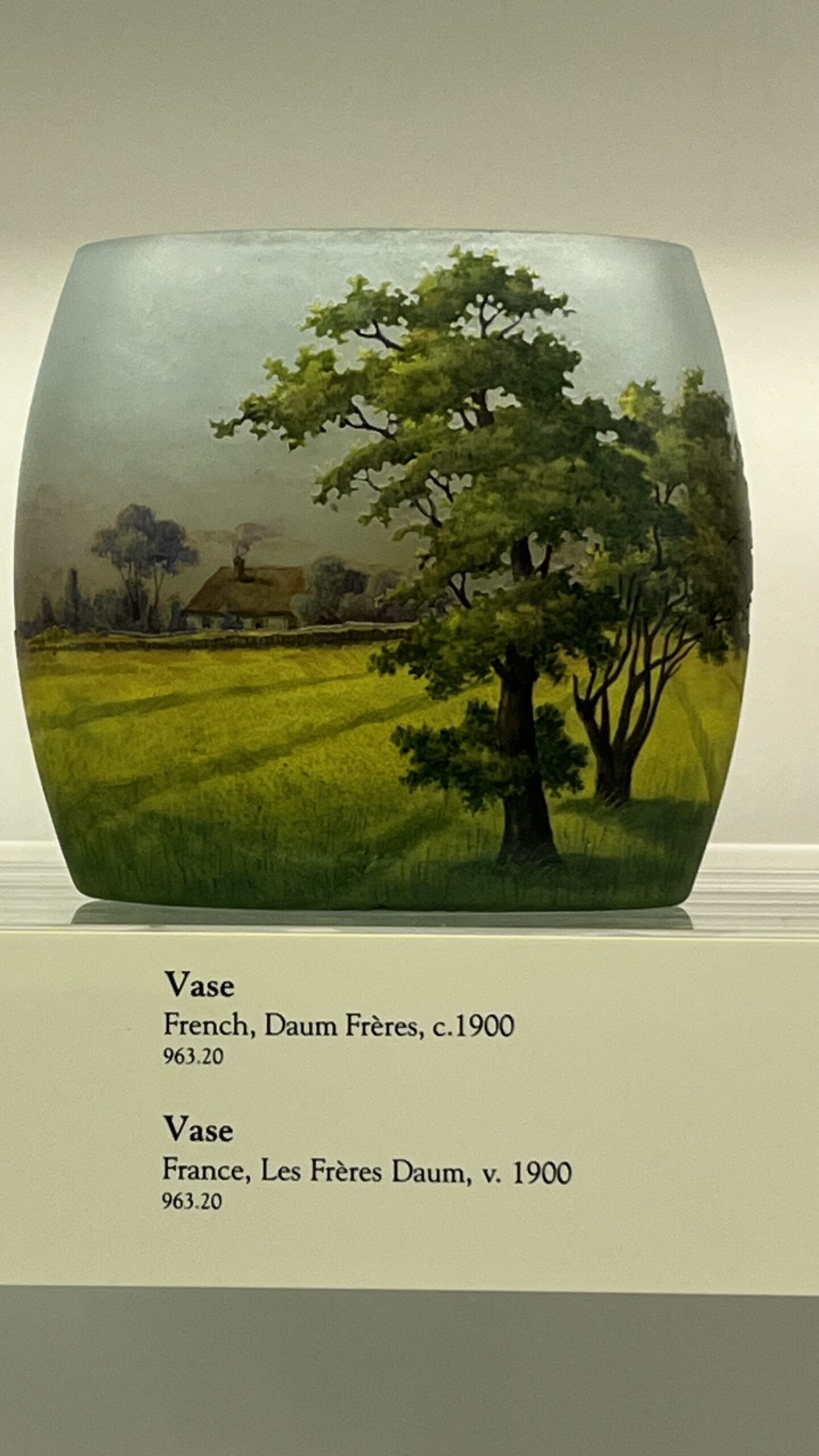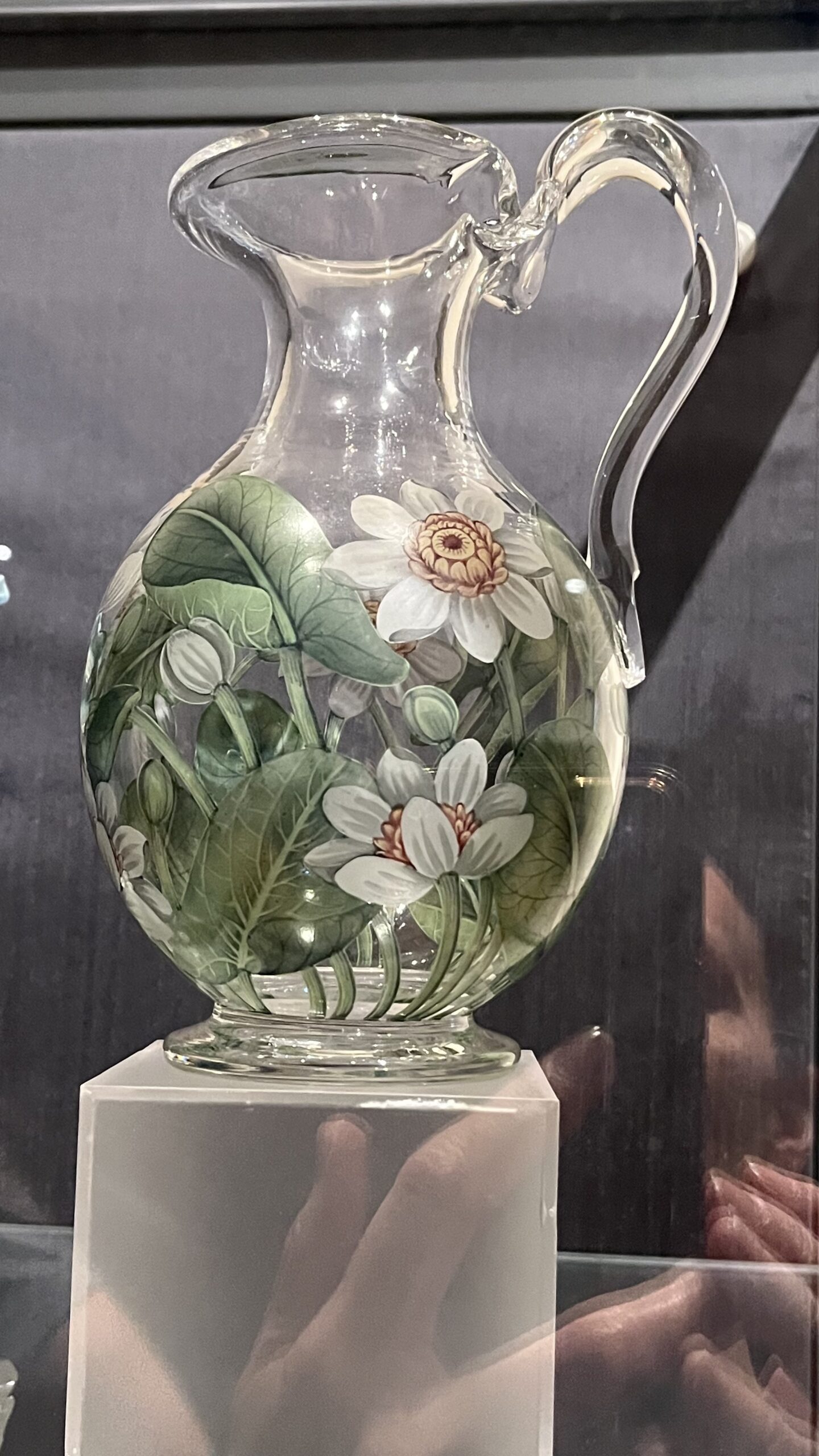 Next we entered an area that I took tons of photos in – a gallery of vases and other similar items throughout the millenniums. Some of the pieces were so beautiful! There are, of course, vases ranging in size from very small to much larger. And, of course, vases of varying materials are on display as well as a lovely variety of finishes – some of the iridescent ones were so striking.