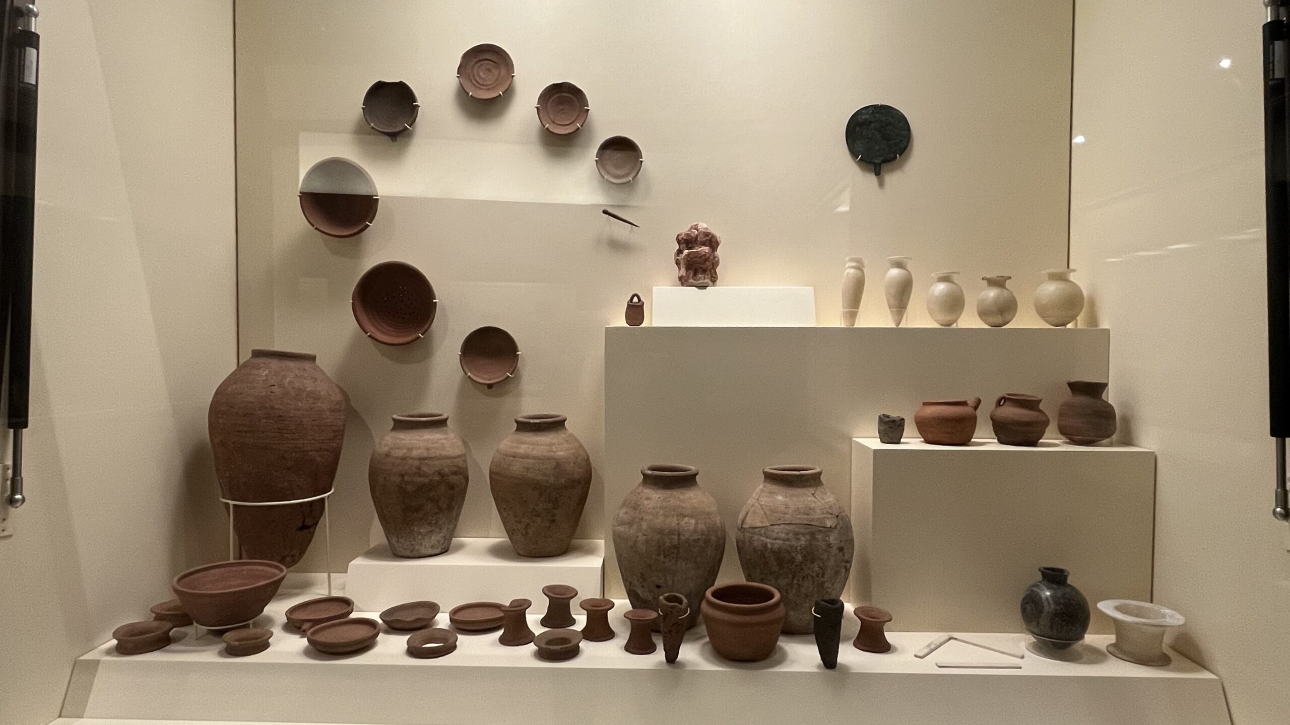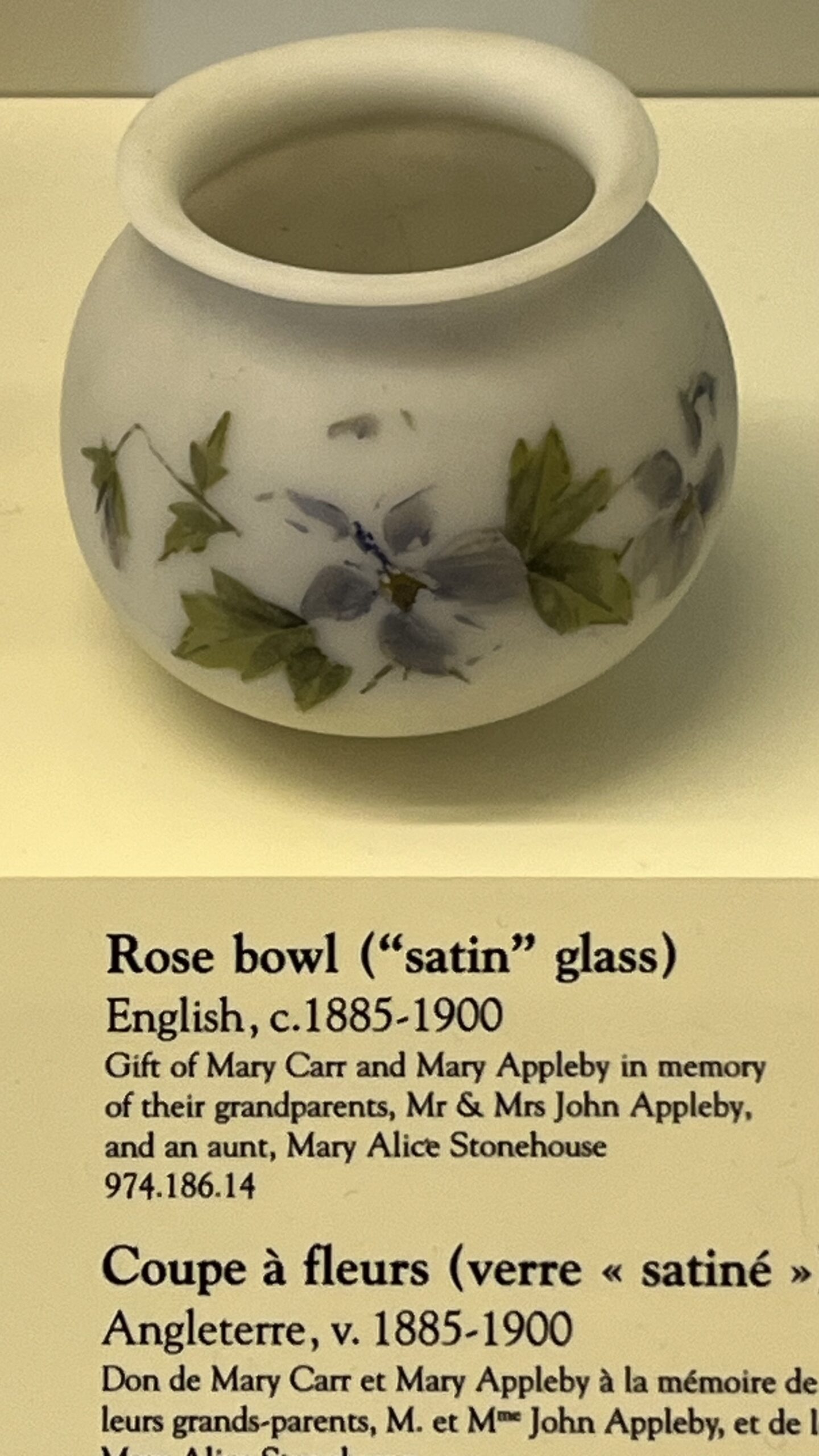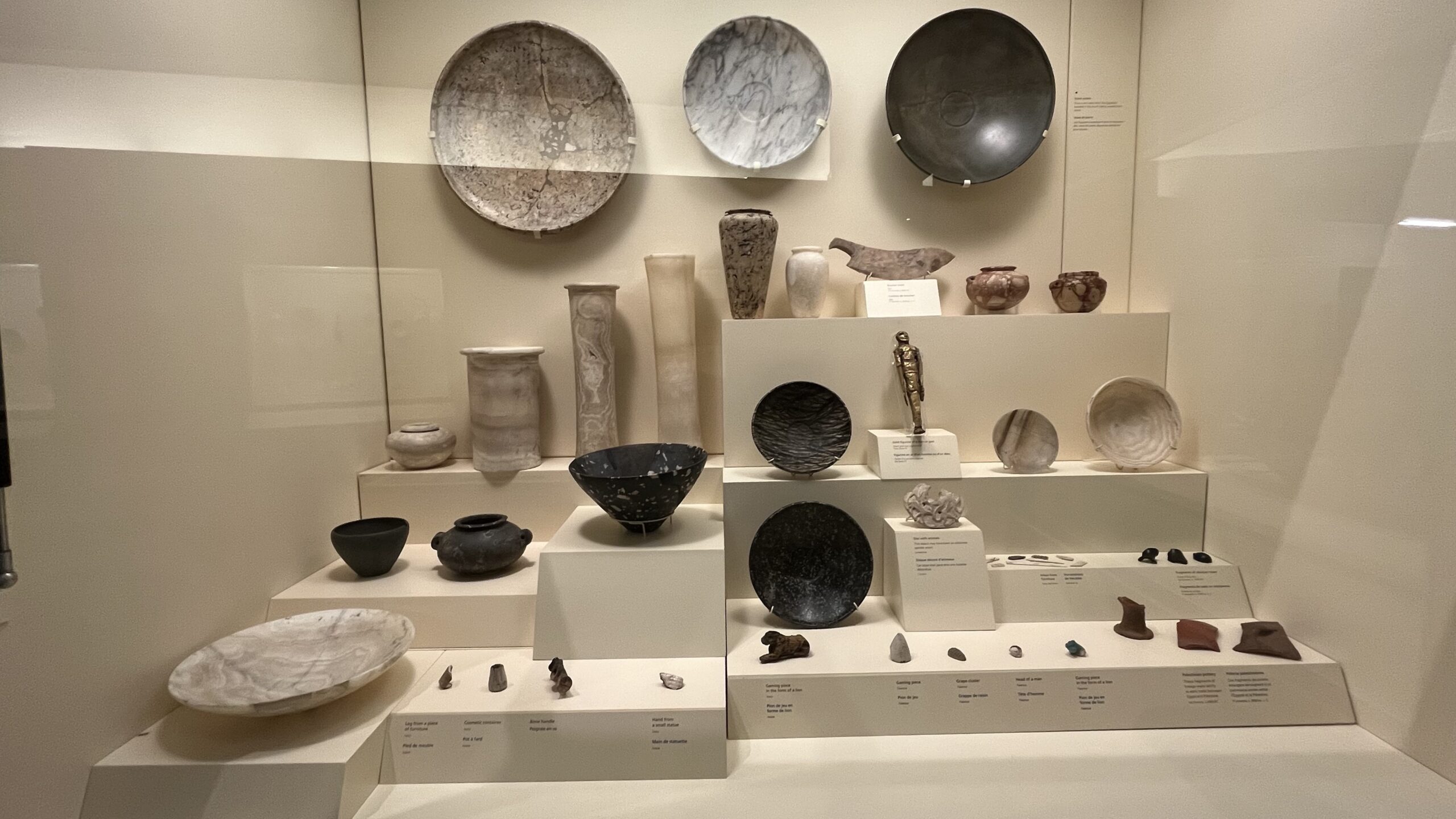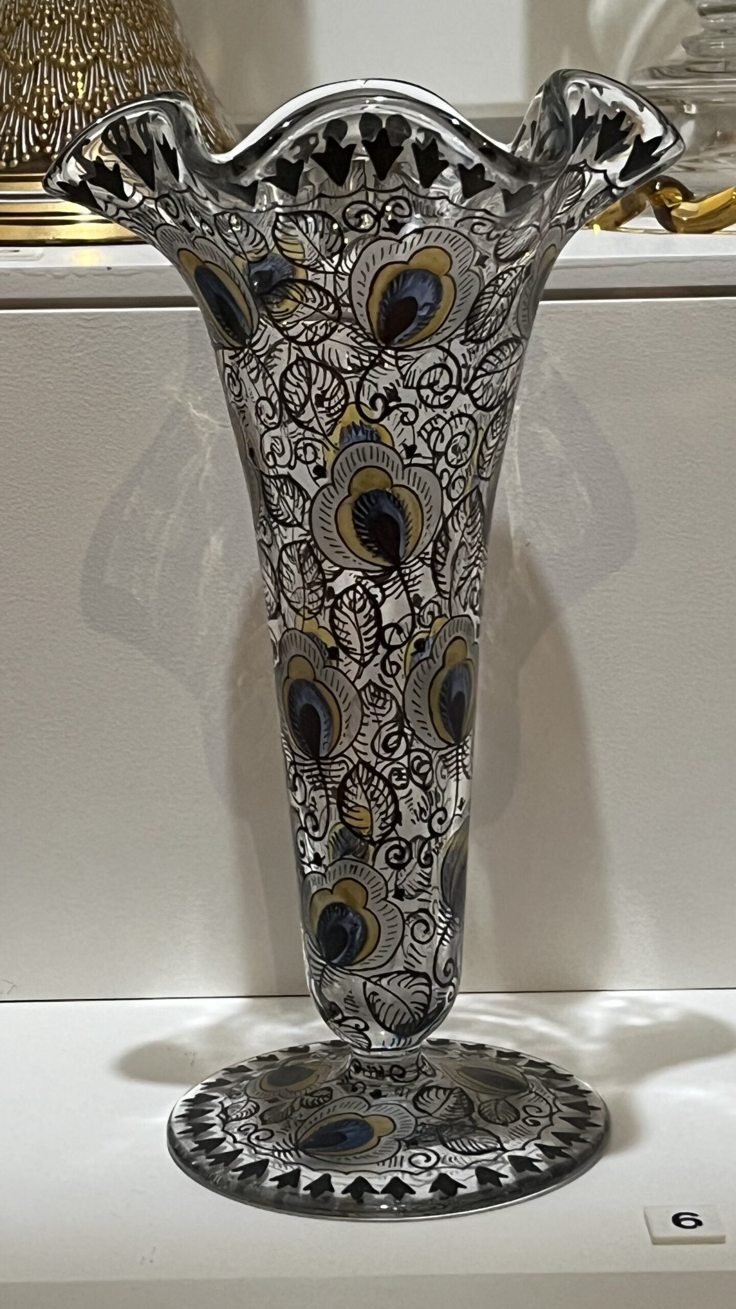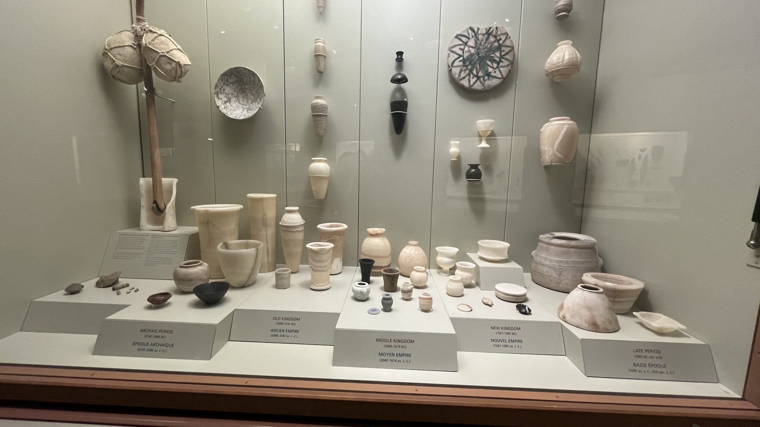 Next we entered an area that I took tons of photos in – a gallery of vases and other similar items throughout the millenniums. Some of the pieces were so beautiful! There are, of course, vases ranging in size from very small to much larger. And, of course, vases of varying materials are on display as well as a lovely variety of finishes – some of the iridescent ones were so striking.