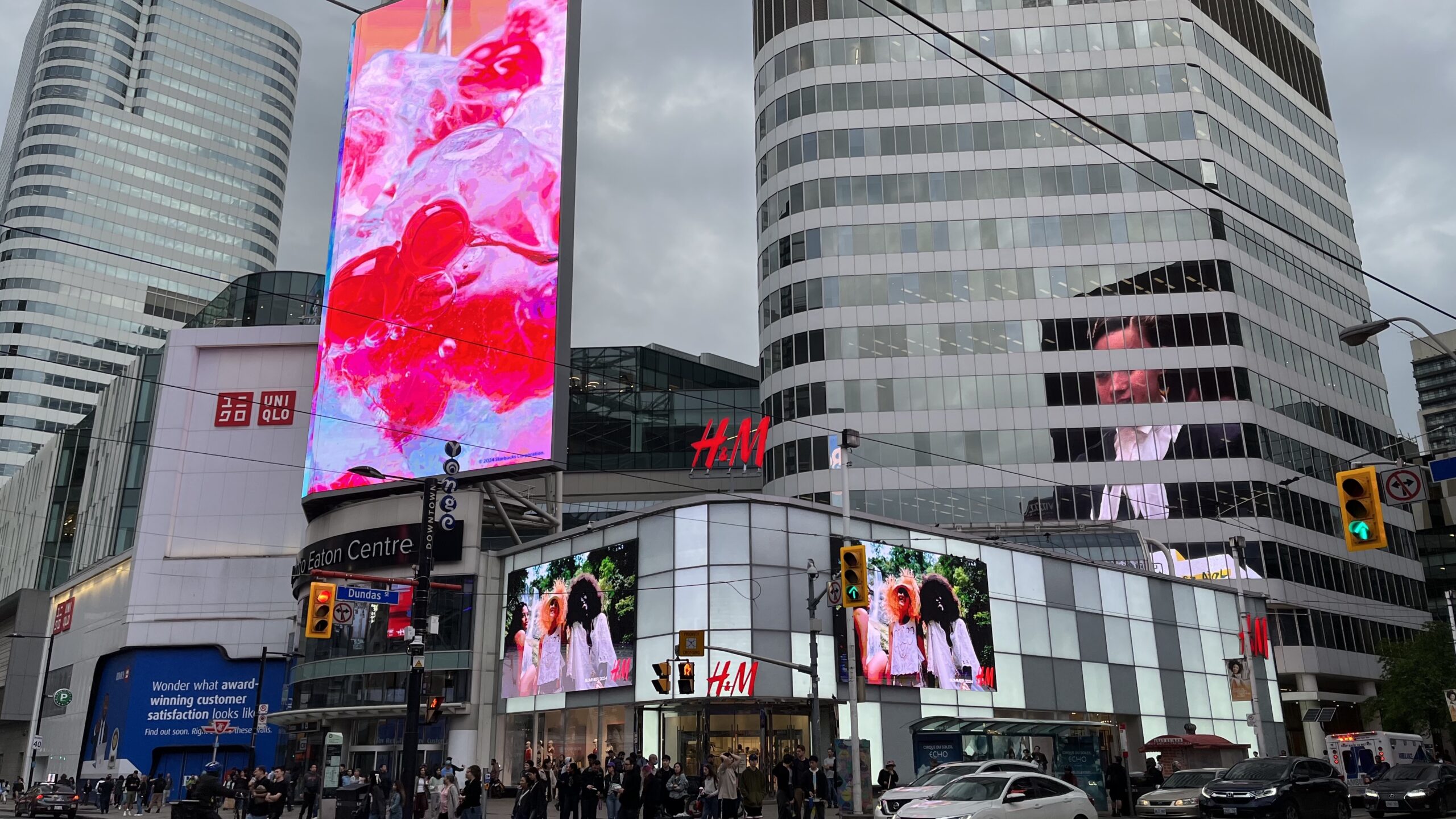 Yonge Street was livelier Friday evening compared to when we were there earlier in the evening the previous day.