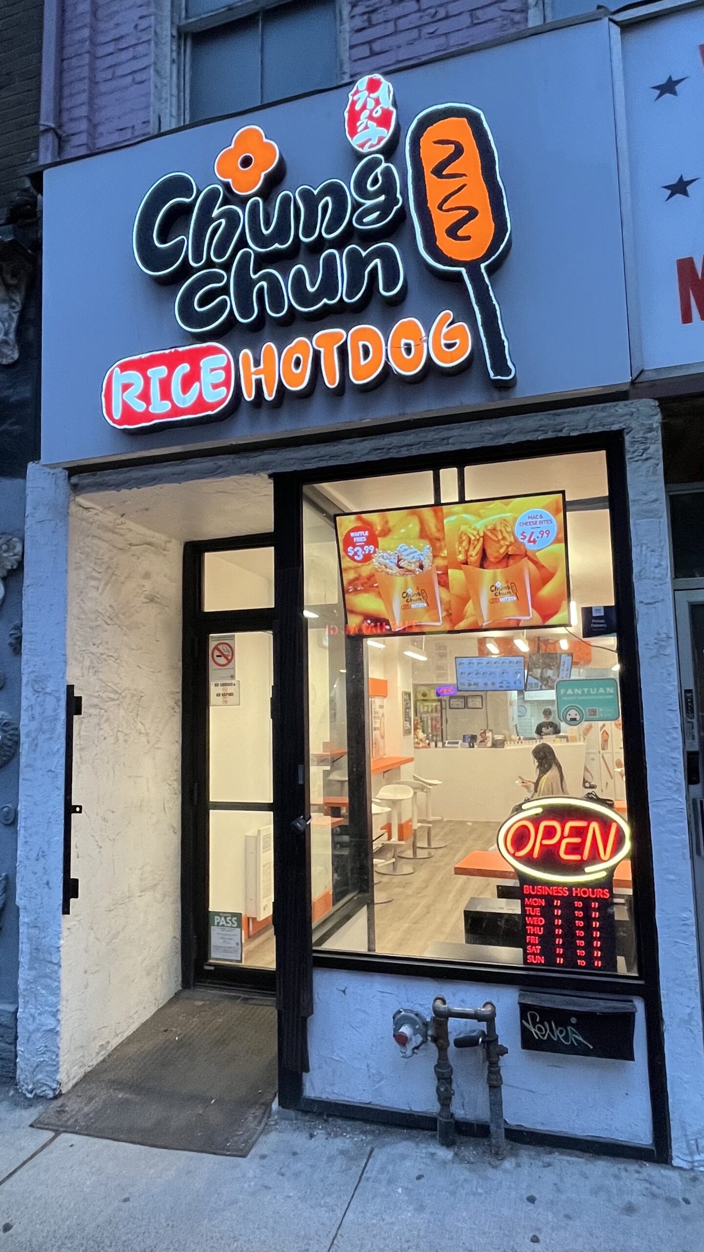 We came across Chungchun Rice Dog. We have been wanting to try a rice dog for awhile, and we finally tried one there! Chungchun specializes in Korean-style hotdogs. They started in South Korea, and they now have locations all over the world.