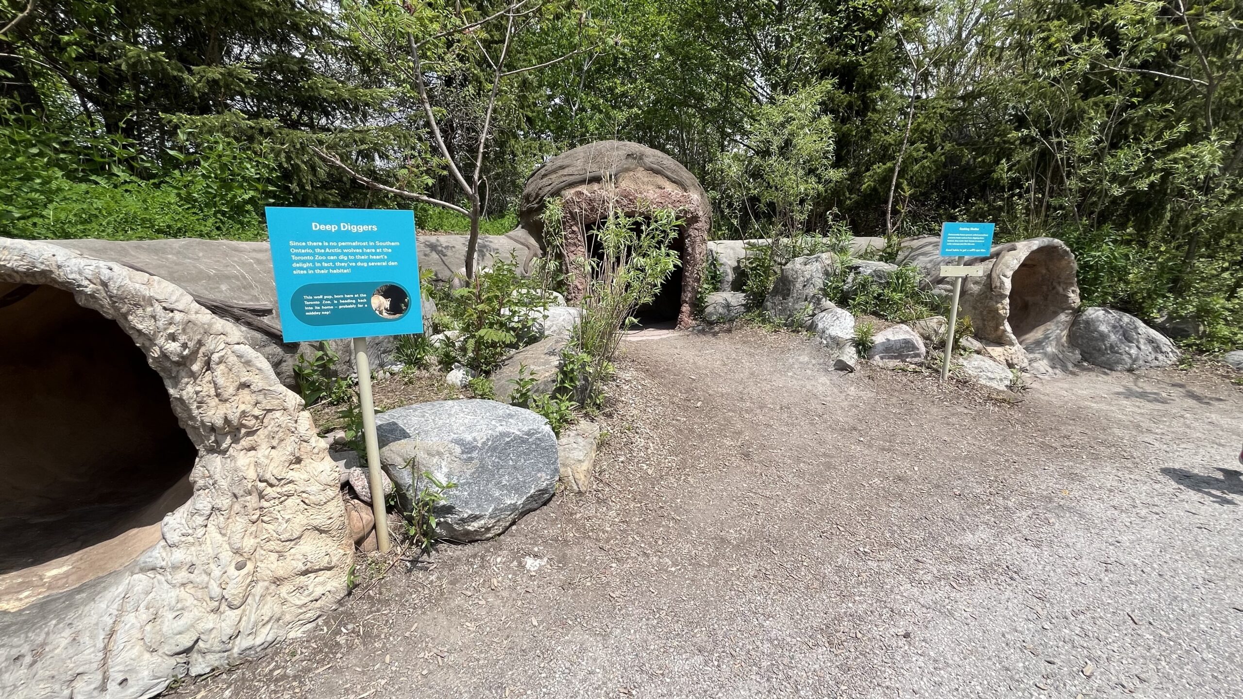 A fun area for kids to climb through near the Arctic wolf exhibit at Tundra Trek in Toronto Zoo, Toronto, ON, Canada