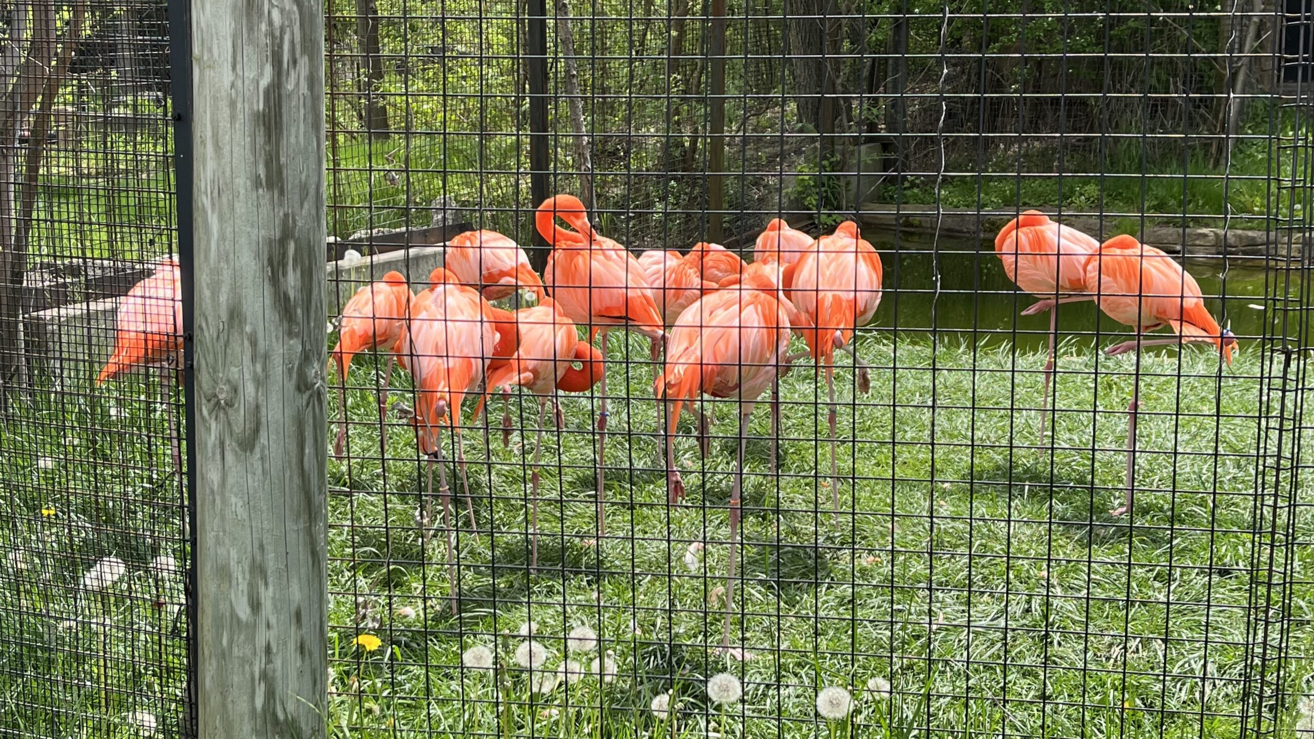 American flamingos in Americas section of the Toronto Zoo, Toronto, ON, Canada