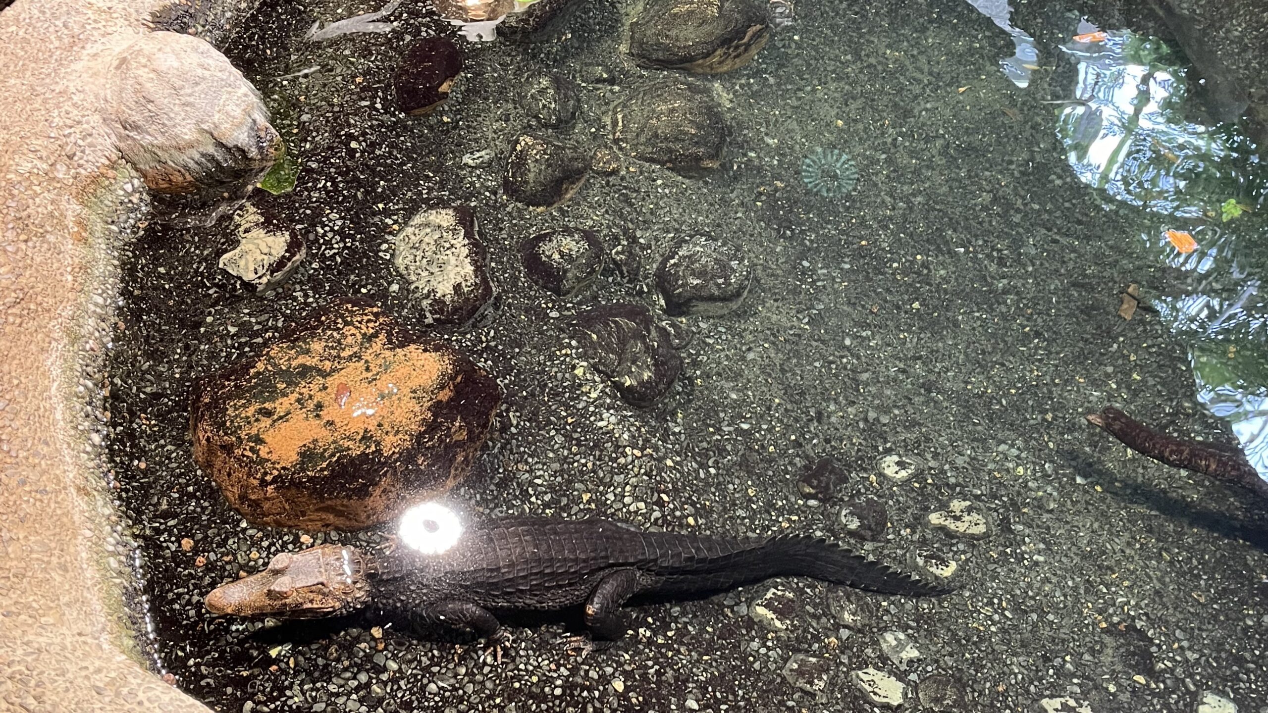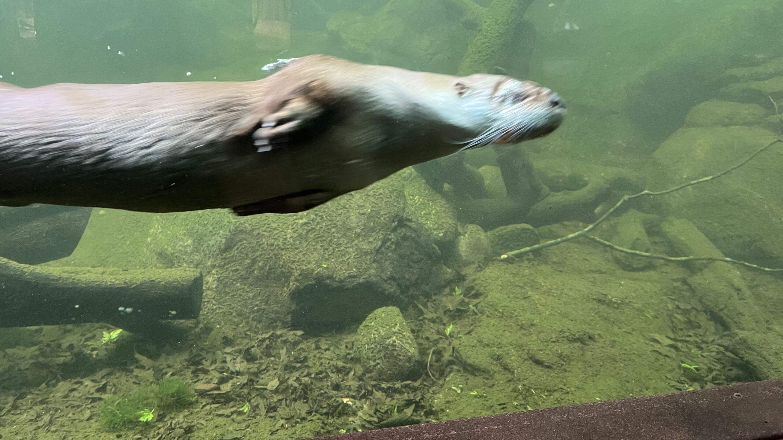 A North American river otter kept swimming right next the glass viewing area. It swims so fast that it’s a challenge to get a photo of it that’s not blurry, but I tried the best I could.