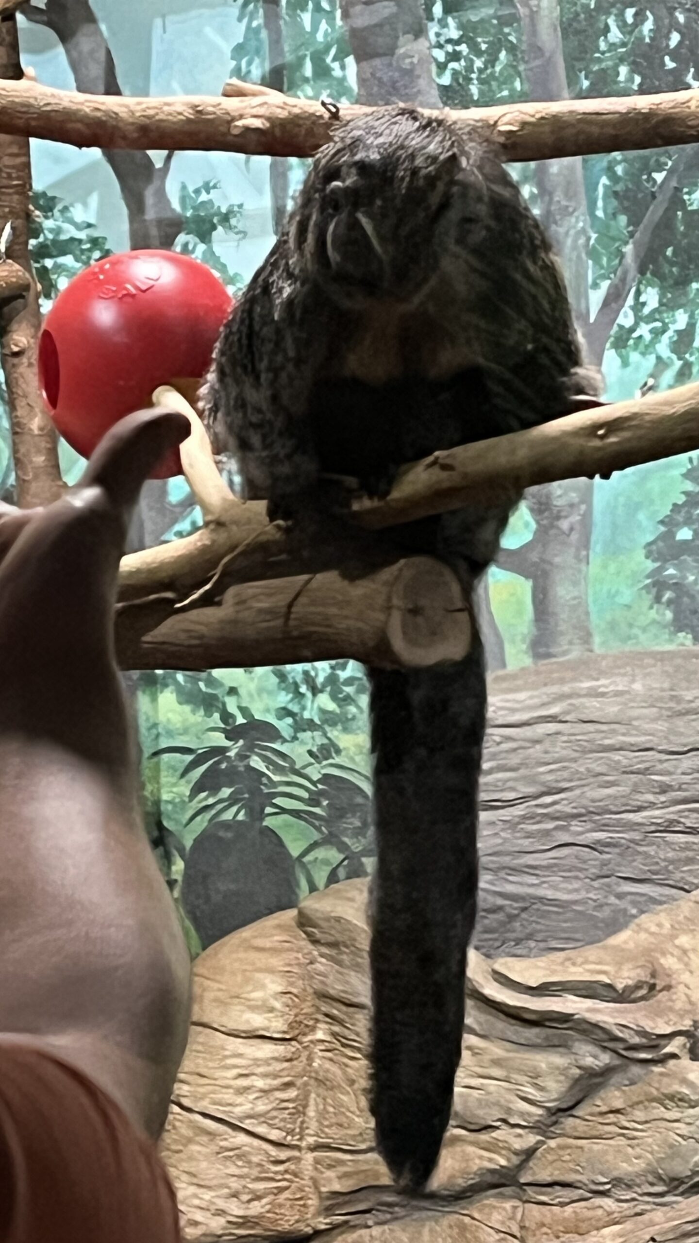 The other animals we saw in the Americas section were American flamingos, capybara, a few different types of turtles, boa constrictor, reptiles, North American river otter, caiman, American alligator, prehistoric fish, green surf anemone, golden lion tamarin, some sort of cute primate that I can’t identify, great horned owl and two-toes sloth.